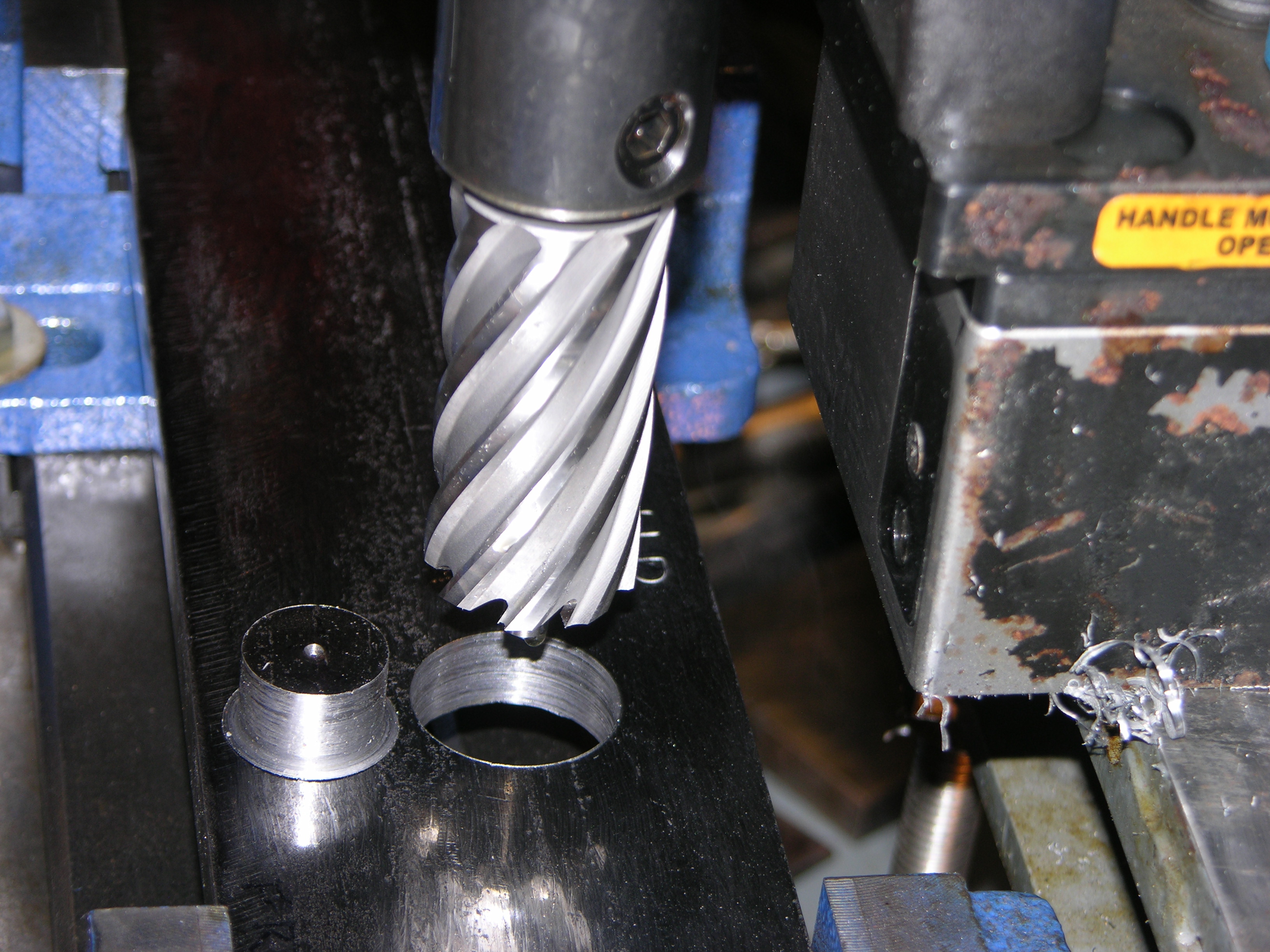 This is how many chips it takes to "install" a 1-1/8" hole - 1/2" steel, 31 seconds, no pilot hole necessary - DSCN3246.JPG DSCN3247.JPG