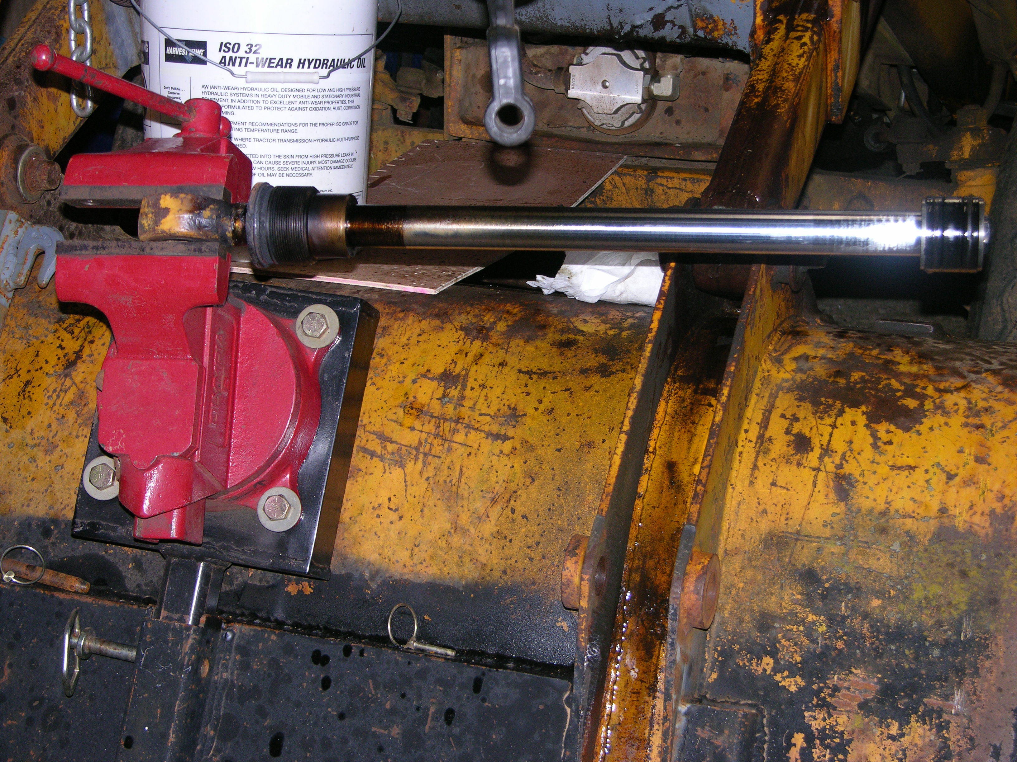 Yup I'd say you had enough heat, so you used that giant monkey wrench on the you call it Gland Nut, got it. The last picture is the rod with seals on the end, how do they come off, I'm assuming you're going to change everything? This whole cylinder rebuild looks strange with no blue buckets in sight, maybe your projects are bucket color coded, white buckets for tractor repair, that's something I'd do, I color code everything with type and markers..................