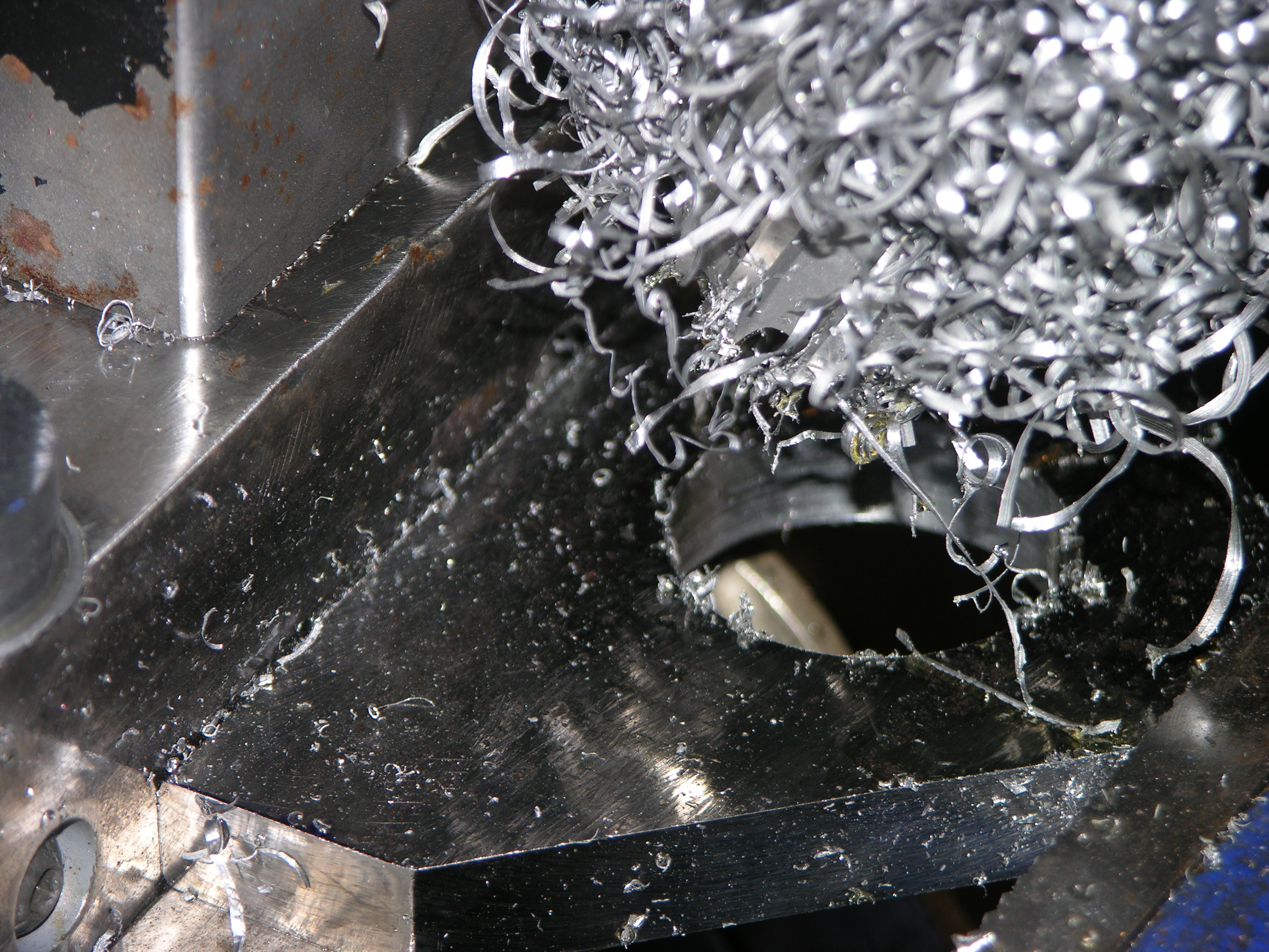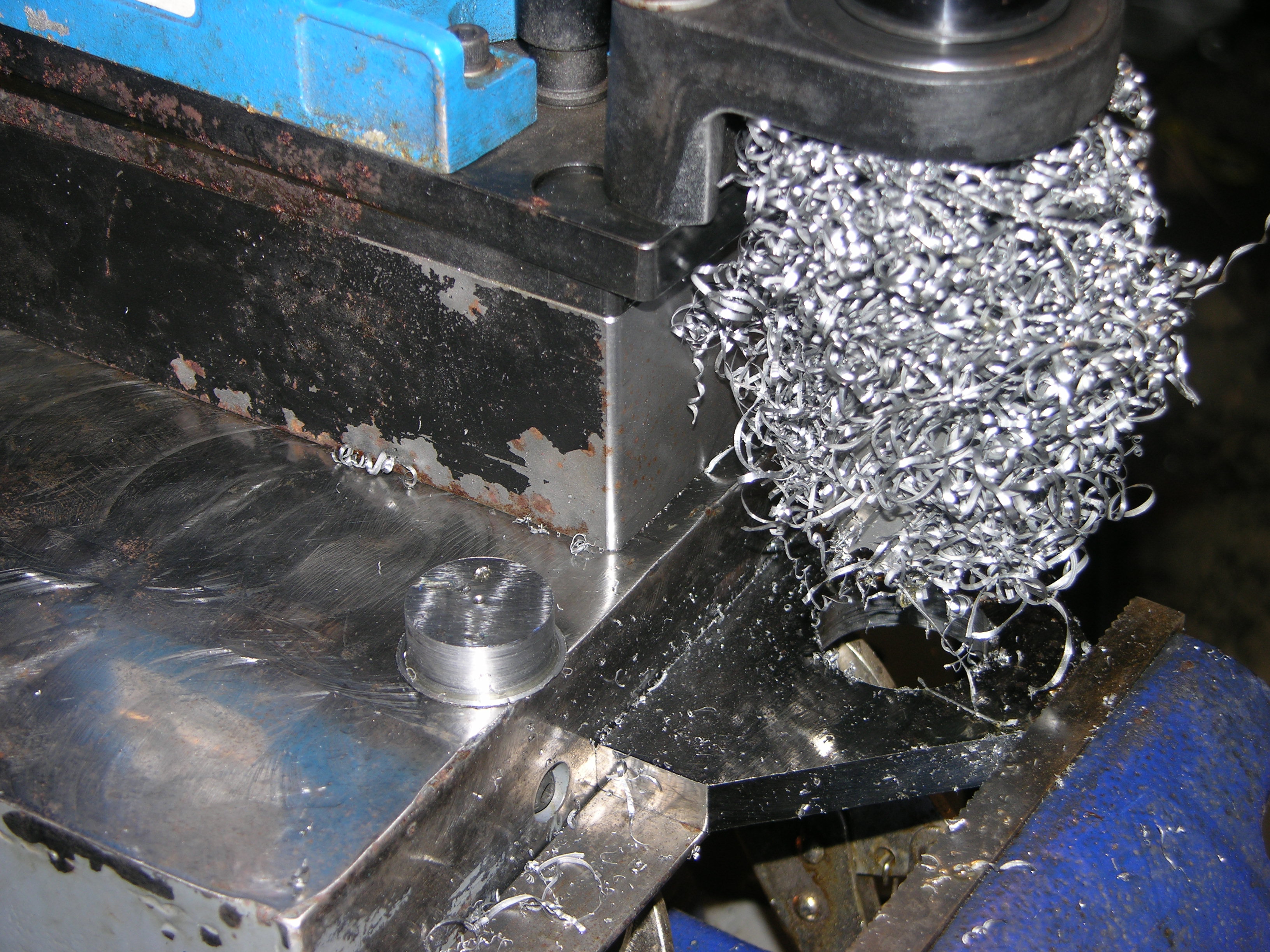 The "birds nest" is whatcha get when you drill a 1-1/2" hole in 1/2" steel with an annular cutter, left it there for the pic - also left the "slug" laying there, if you want "purty" you can look at the LAST pic :D