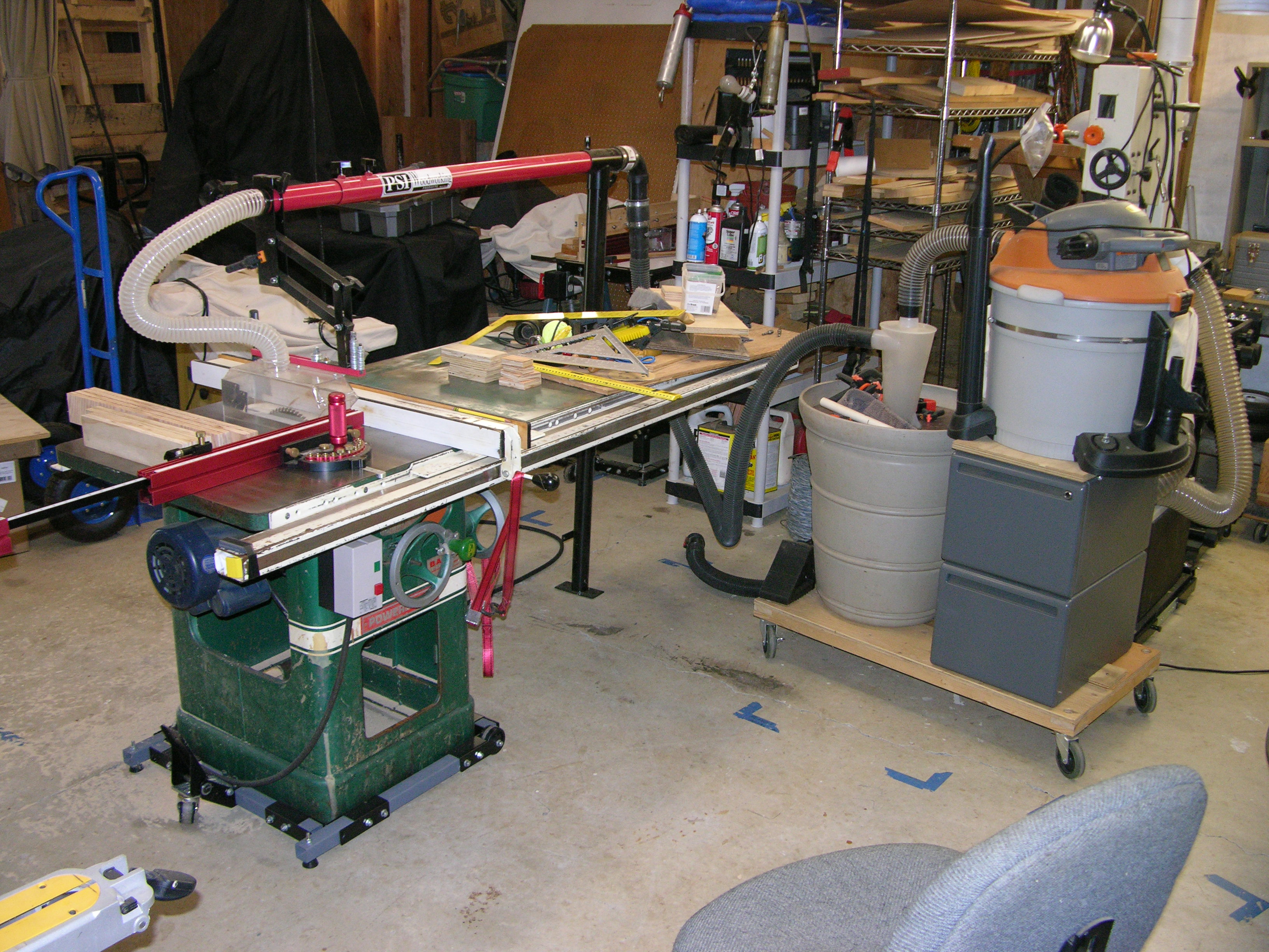 I still need to spend some time working out improvements to dust control on the saw, it didn't have a motor cover when I got it and I'm moving the lower dust port 90* so it'll be under the extension table, that way both dust collection hoses will be together - one to the bigger cyclone and the overhead to the shop vac. Also need to come up with a slick internal "ramp" that'll encourage the dust to actually WANNA go to the port...