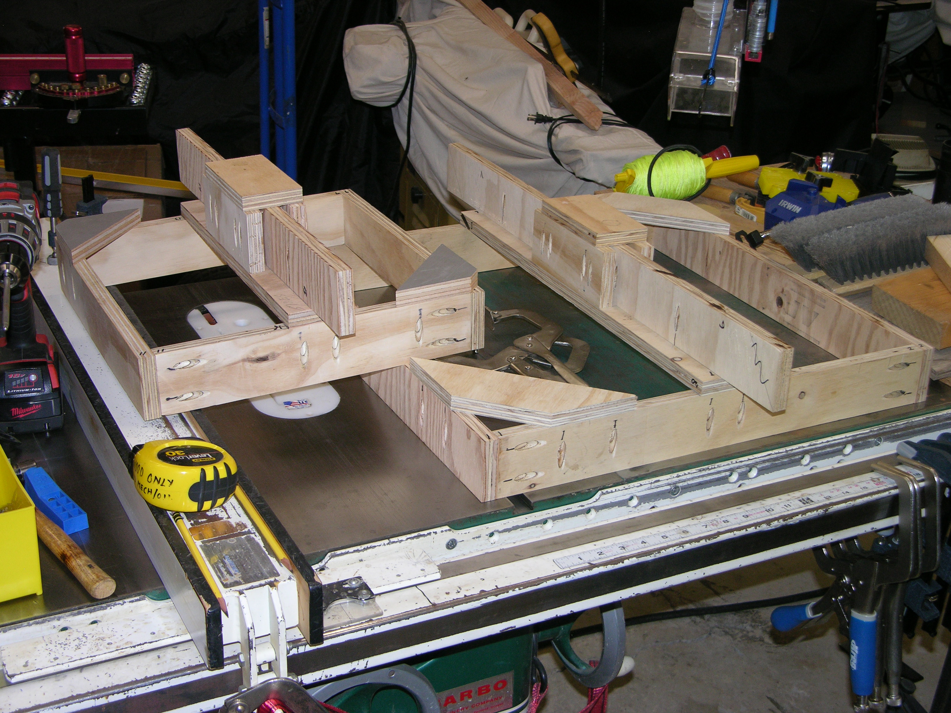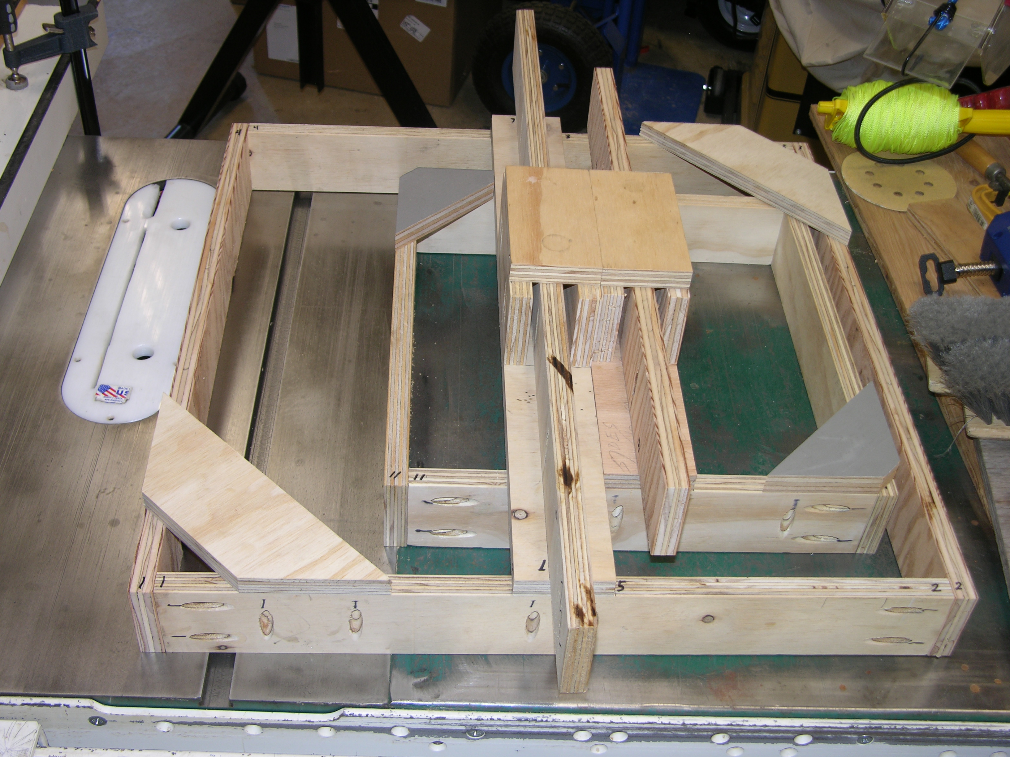 I finally bailed when it hit 97 in the shop; even a 30" fan on high wasn't helping much :eek: Had a late lunch, will probably go back down (to the OVEN) and see whether the pizza's done yet :rolleyes: - if not, next 2-3 days are supposed to be below 90. Need to get the corner blocks glued/screwed in so I can fire up the jig saw and "cut the wiggles out", then it's time to get some power to 2 of the containers and put these templates to work... Steve