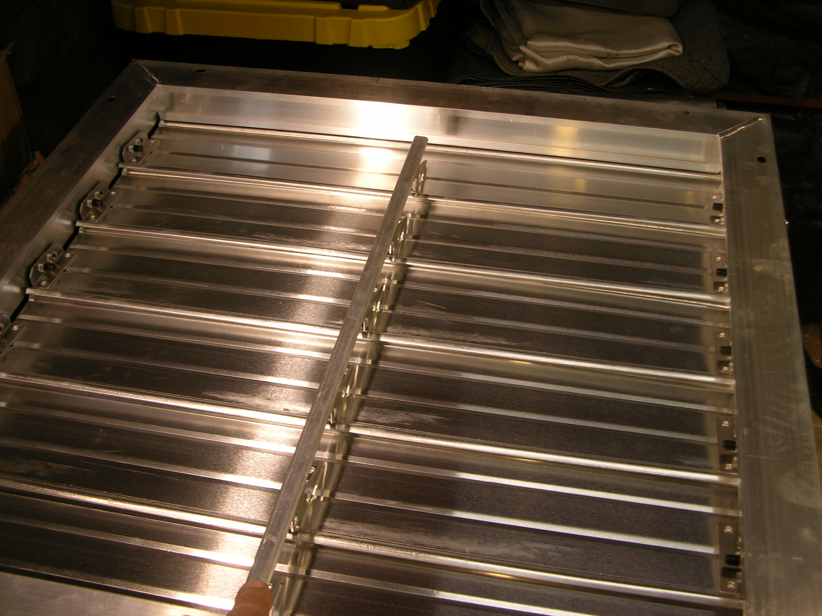 This is what the louvers look like open and closed; that bar down the center gets a spring/chain/actuator motor. Gravity closes, motor opens by pulling the bar downward - DSCN3405.JPG DSCN3406.JPG