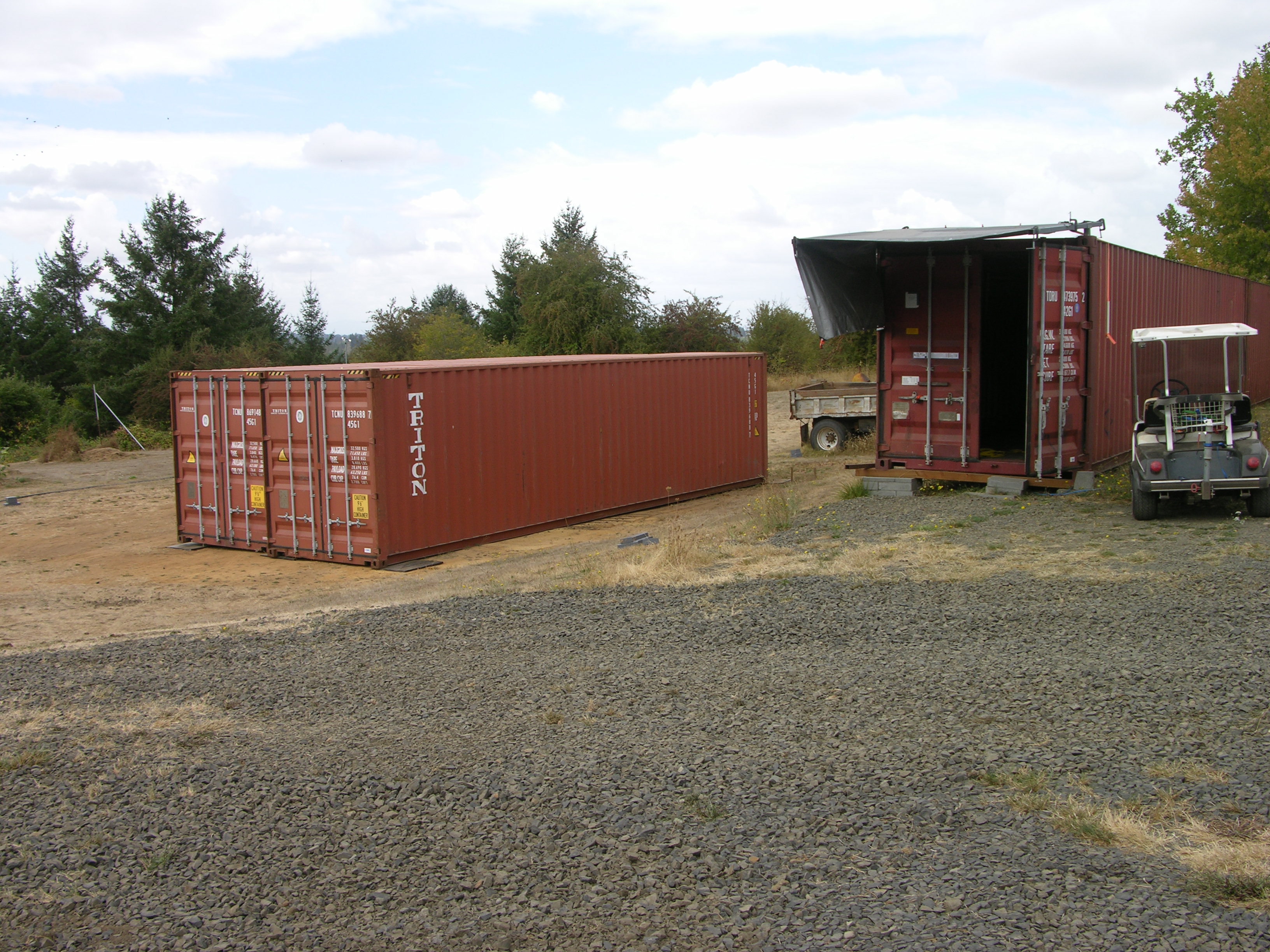 The goal was to get the containers moved into place while weather was still DRY; that's CLAY soil, and it doesn't tend to play nice with wetness and heavy equipment :rolleyes: ...Steve