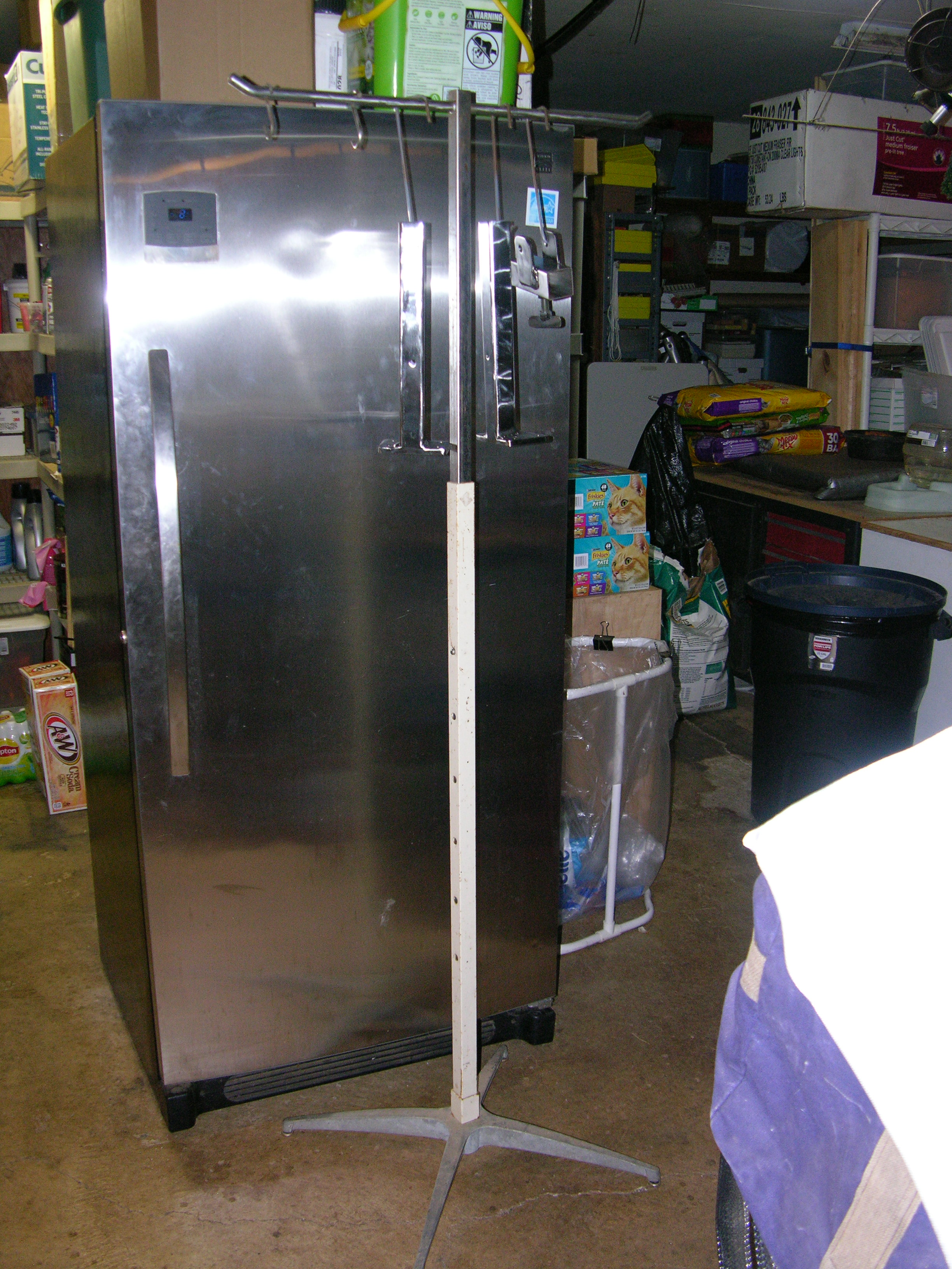 Been a few degrees too cool here for paint, so I'm figuring out a portable paint booth (4x4x8) out of 1" foam board insulation - that part's easy, but I also want a way to put a rack in it so I can hang several smaller pieces in there to cure - just a small bathroom heater inside overnight will keep things above the 50* minimum my paint wants.