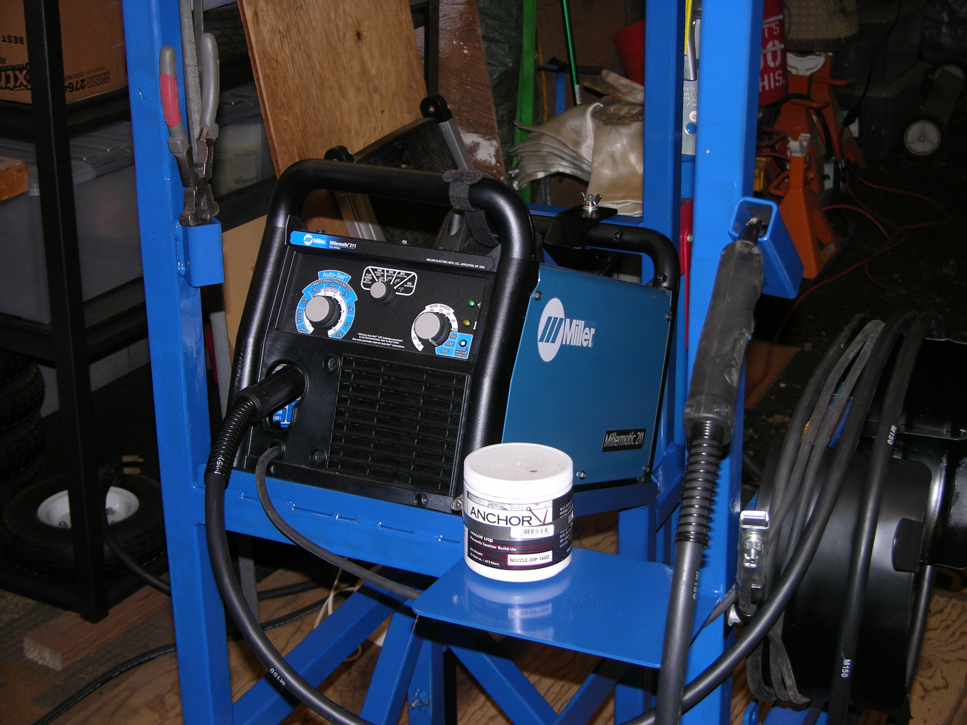 It's further back in the garage ATM - you probably missed back on the beginning; the 252 is gonna stay in the garage and get used anywhere "local" and/or BIG - the 211 will live in the container and get used anywhere else (including the bridge crane build). Those options are the point of this cart being "multi-movable" - My 8kw genny will run it (the MM211) AND the small compressor no prob, and I'll put some "stick on a roll" in the 211 if/when I get to the massive fence re-do (just under 3000 feet of 4' field fencing with 3" square tube H braces every 330 feet, welded in the field -