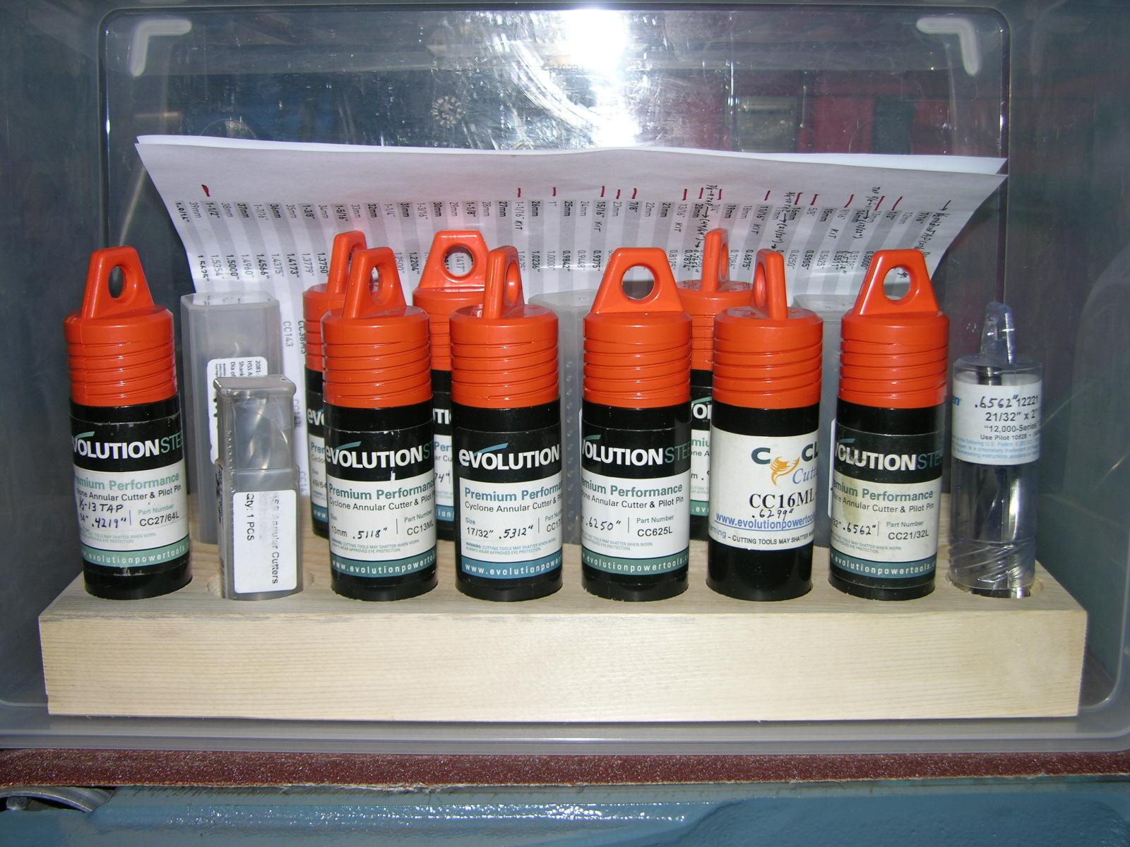 Guess I'll hafta settle for rusty holes :confused: - my cutters of choice only come in 1/64" increments in a few sizes, intended for tap drills. Same with 1/32" increments, only a couple of those. When I want a slight clearance for normal inch sized bolts I can usually find a METRIC just a few thou bigger - here's the list of cutters I have so far; mine are highlighted in red on pages 15 and 16 - p.16 bottom of the page is all tap drills, but I use 'em anywhere I need that size. I like that their charts are arranged in increasing diameters, whether inch or metric. That's also the order I keep mine in - DSCN1966.JPG
