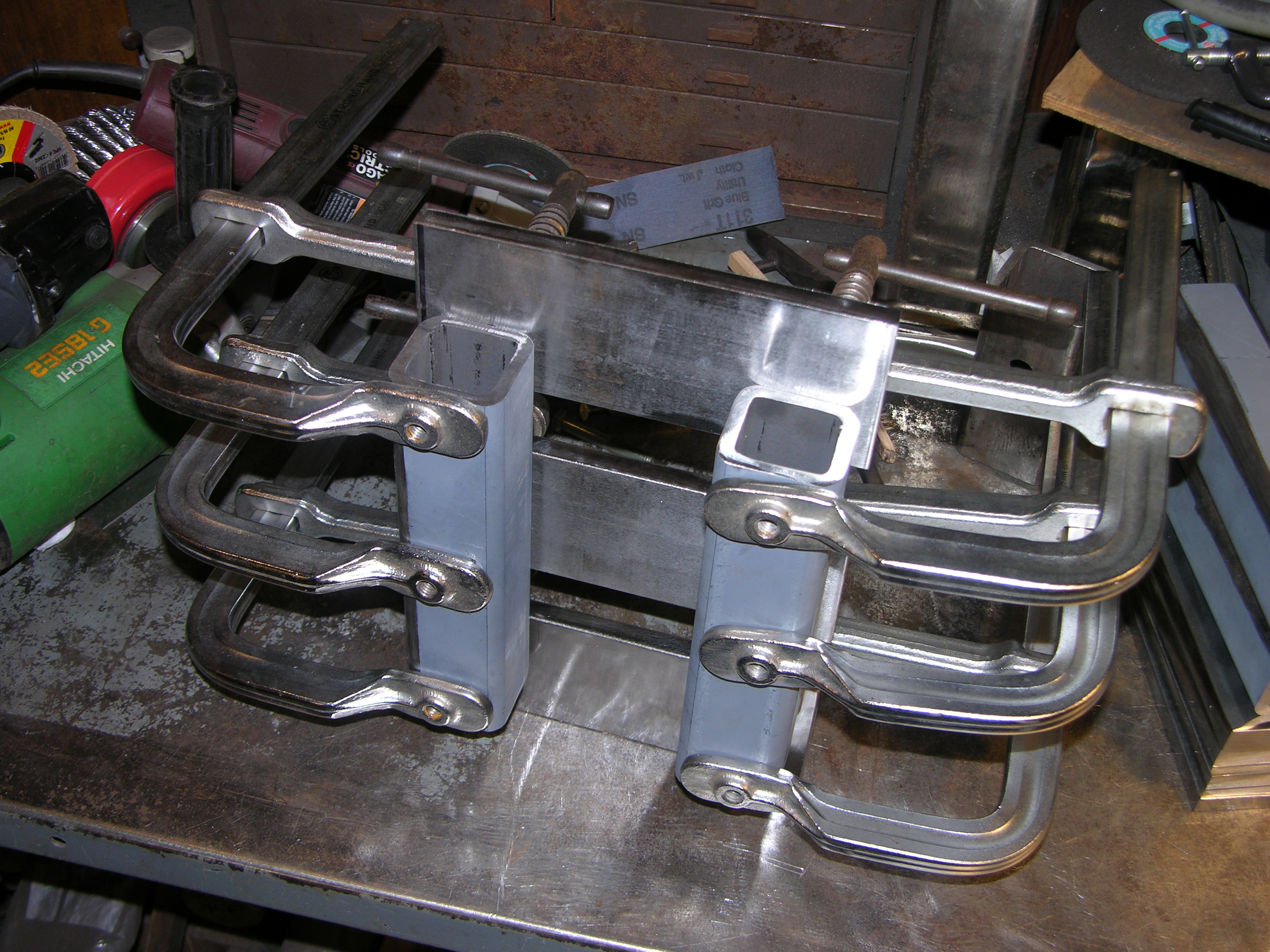 DSCN2325.JPG - came out near perfect - note the diagonal brace that's clamped at EVERY CROSS MEMBER - also, with no flat/level surface to fab on, I used one of these