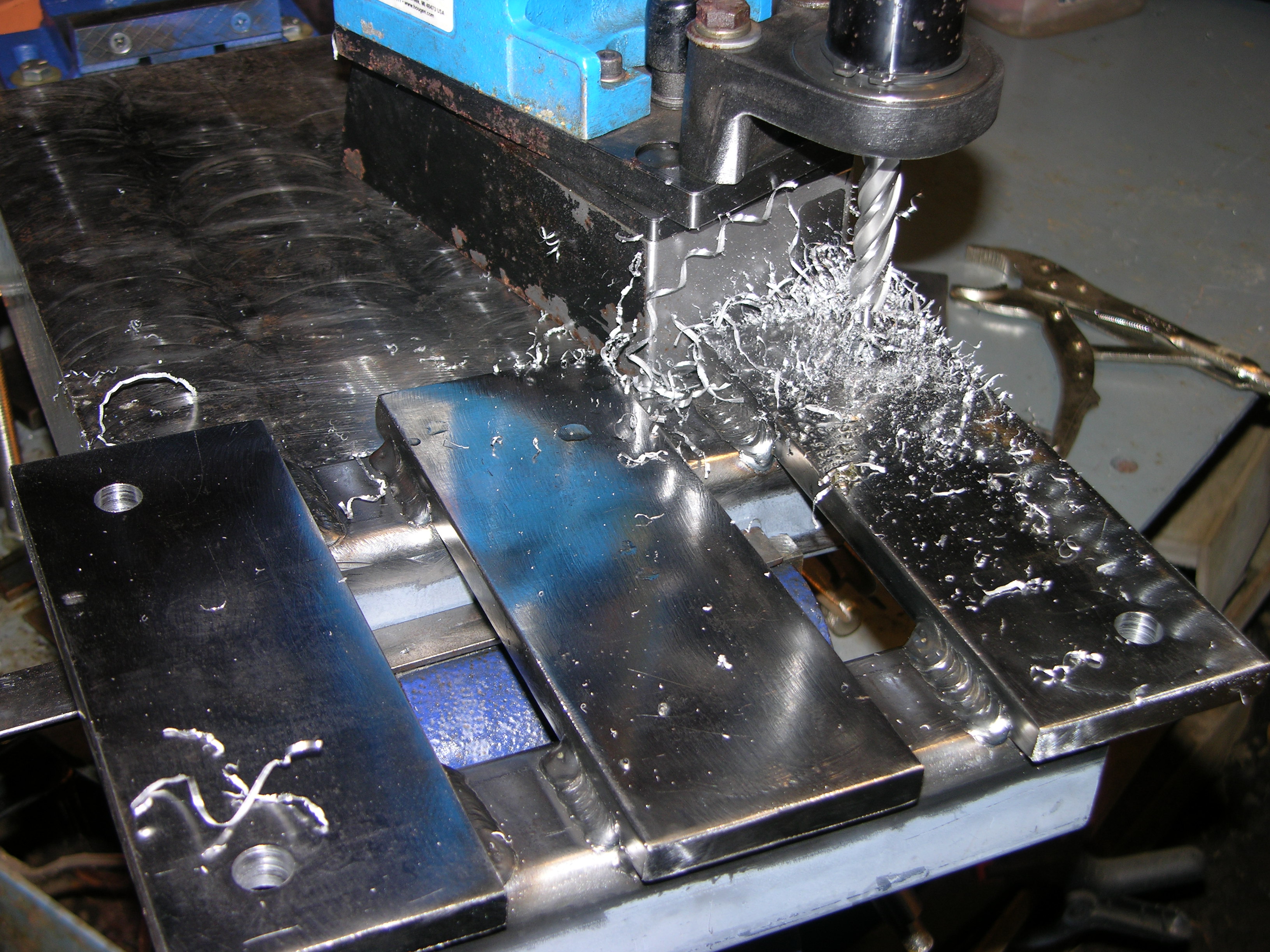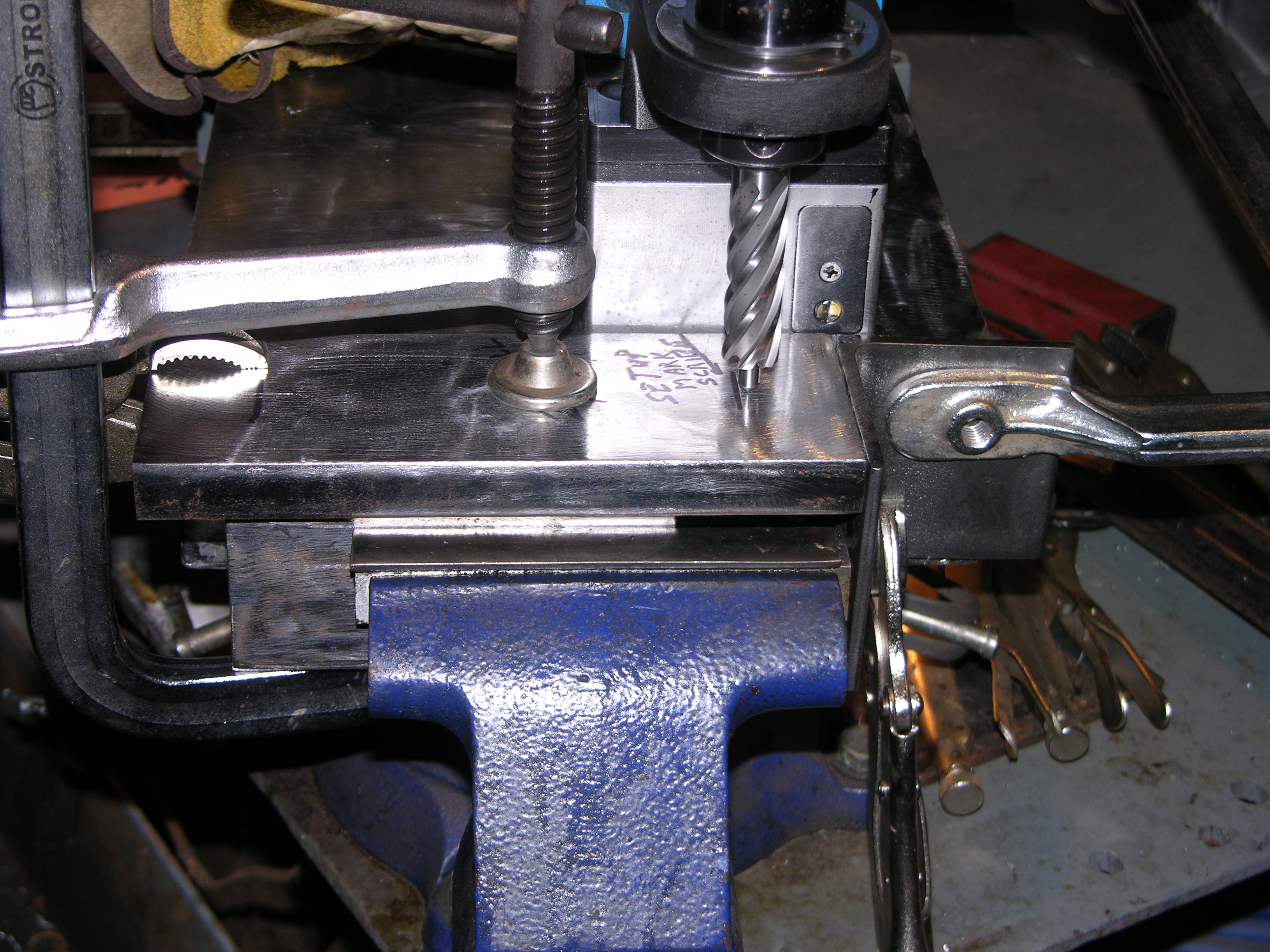 "Are you implying that maggie will be using some sort of cutters instead of drill bits?" - Yup, I have a chuck adapter for the mag drill to use twist drills but haven't used it yet - that'd take another mod to my drilling setup that hasn't happened yet, so any hole I can make with annular cutters gets drilled that way. Cleaner, faster, easier and does NOT WANDER, with or without a punch mark -
