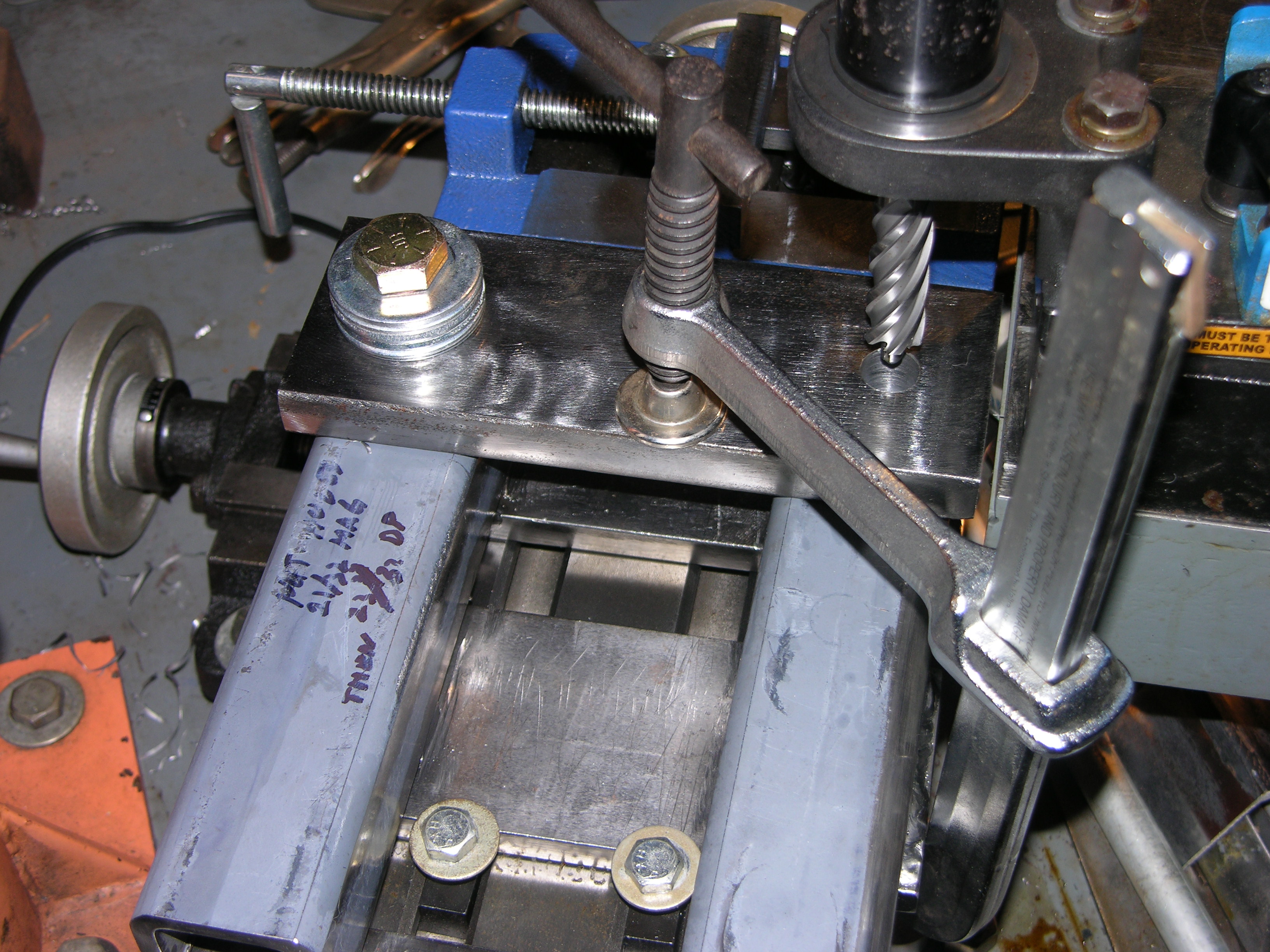 Getting stops set up to drill all 8 holes in the 3/4x3 holddown bars - DSCN3086.JPG -