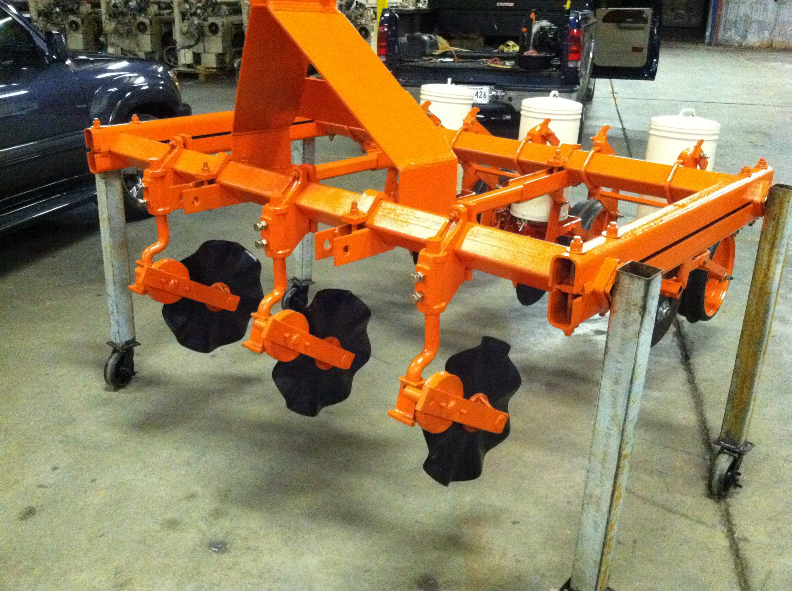 i converted an old pull type Allis Chalmers 4 row into a three point hitch style 3 row. Just welded up a frame with hitch pins. There should be lots of conversions on the Internet that did similar modifications.
