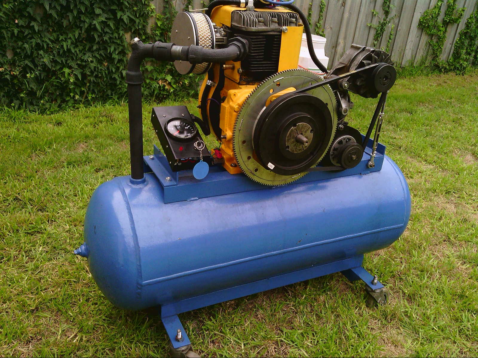 Many (most?) larger (20+ HP) refrigeration compressors are designed to be used with an colascing oil seperator after the compressor to get most of the oil out of the compressed refrigerant.Many other candidates such as motorcycle or small air cooled stationary engines. Belt driven refrigeration compressors in the larger sizes should not be overlooked either. These already have a valve plate, their only disadvantage is that some of them don't have oil scraper rings and can blow a lot of oil fog into the air stream. That might be an advantage for air tools, but not for spray painting !