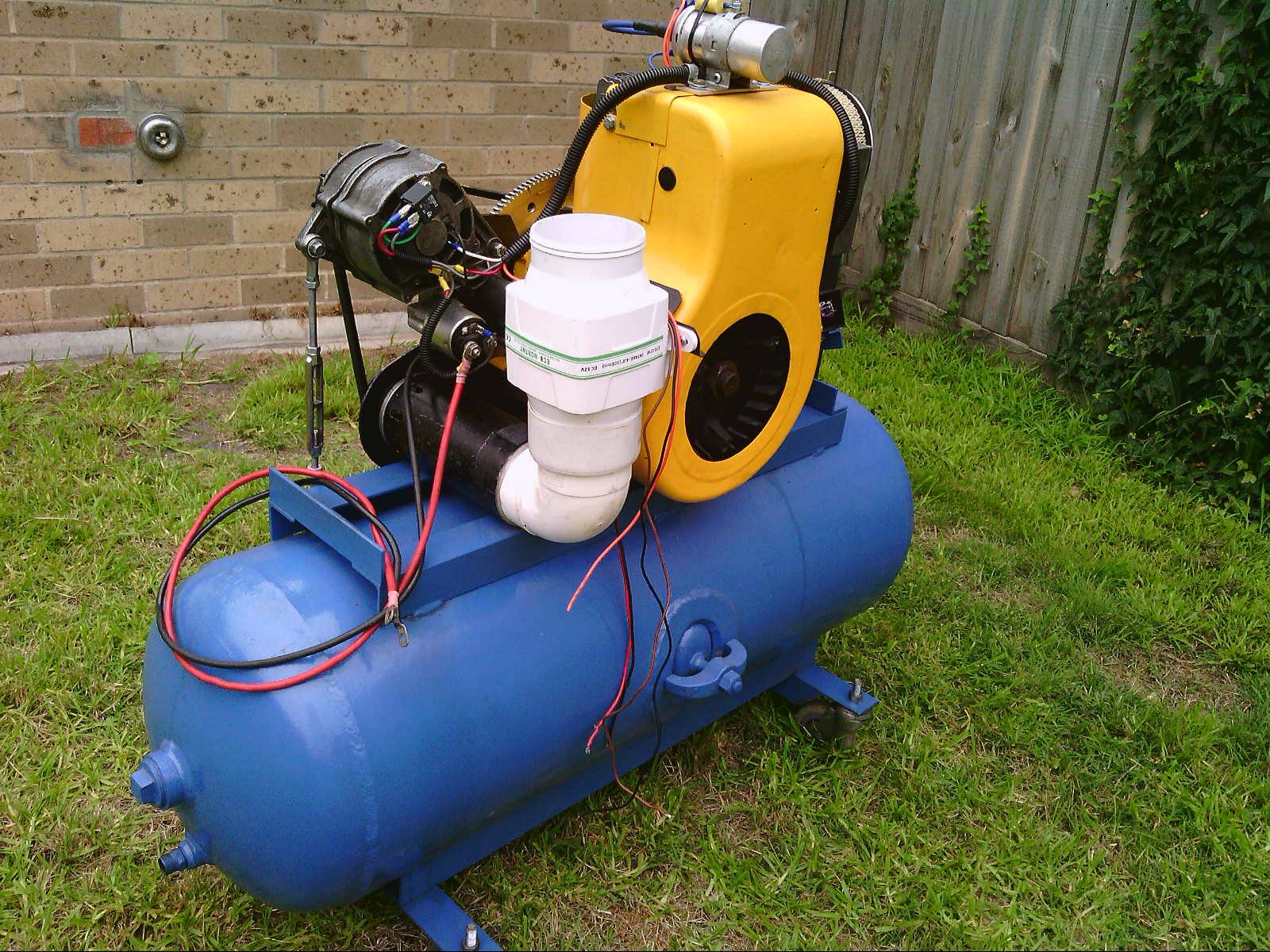 Many other candidates such as motorcycle or small air cooled stationary engines. Belt driven refrigeration compressors in the larger sizes should not be overlooked either. These already have a valve plate, their only disadvantage is that some of them don't have oil scraper rings and can blow a lot of oil fog into the air stream. That might be an advantage for air tools, but not for spray painting !