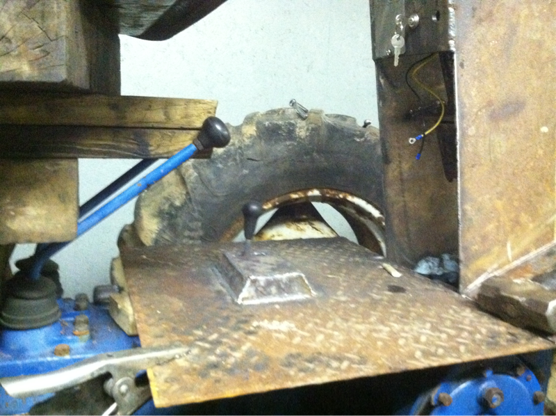 Welp only worked on it bout hour tonite. I didnt care much for having the floor cut open around the 4wd shift lever. (previous pic). So i built this lil thing around it with just a slot for handle. What u guys think? Now i been thinking bout hydraulic valves, was goin use 3 spool valve and jus mount it between dash and fender. But now im liking the look and feel of using a compact spool valve from a john deere garden tractor. Mount the valve inside the dash tower which will be getting full. Then mount the deere handle assembly on side of dash, like shown in pic to get rough idea. I have a 2 spool valve but im thinking using 3 spool and building a sideshift carriage later on for forks.
