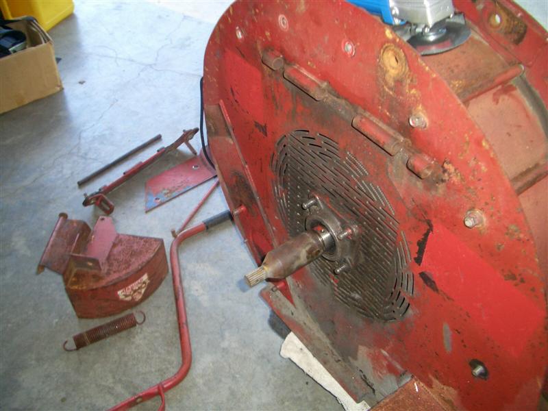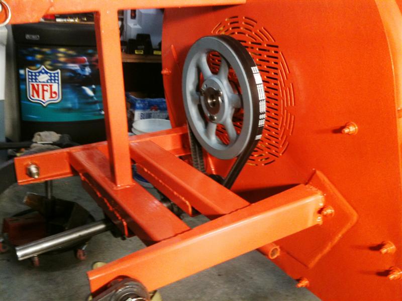 Yes the fan is turning in the correct direction, that was a big reason I felt the blower could be converted without too much trouble. Does it really make a difference which shaft the pulleys are on? The fellow at the power transmission shop where I bought the sheaves didn't seem to think so and, if you refer to the exploded parts illustration I posted earlier, you can see the lower sheave is smaller than the fan sheave in the oem setup as well.