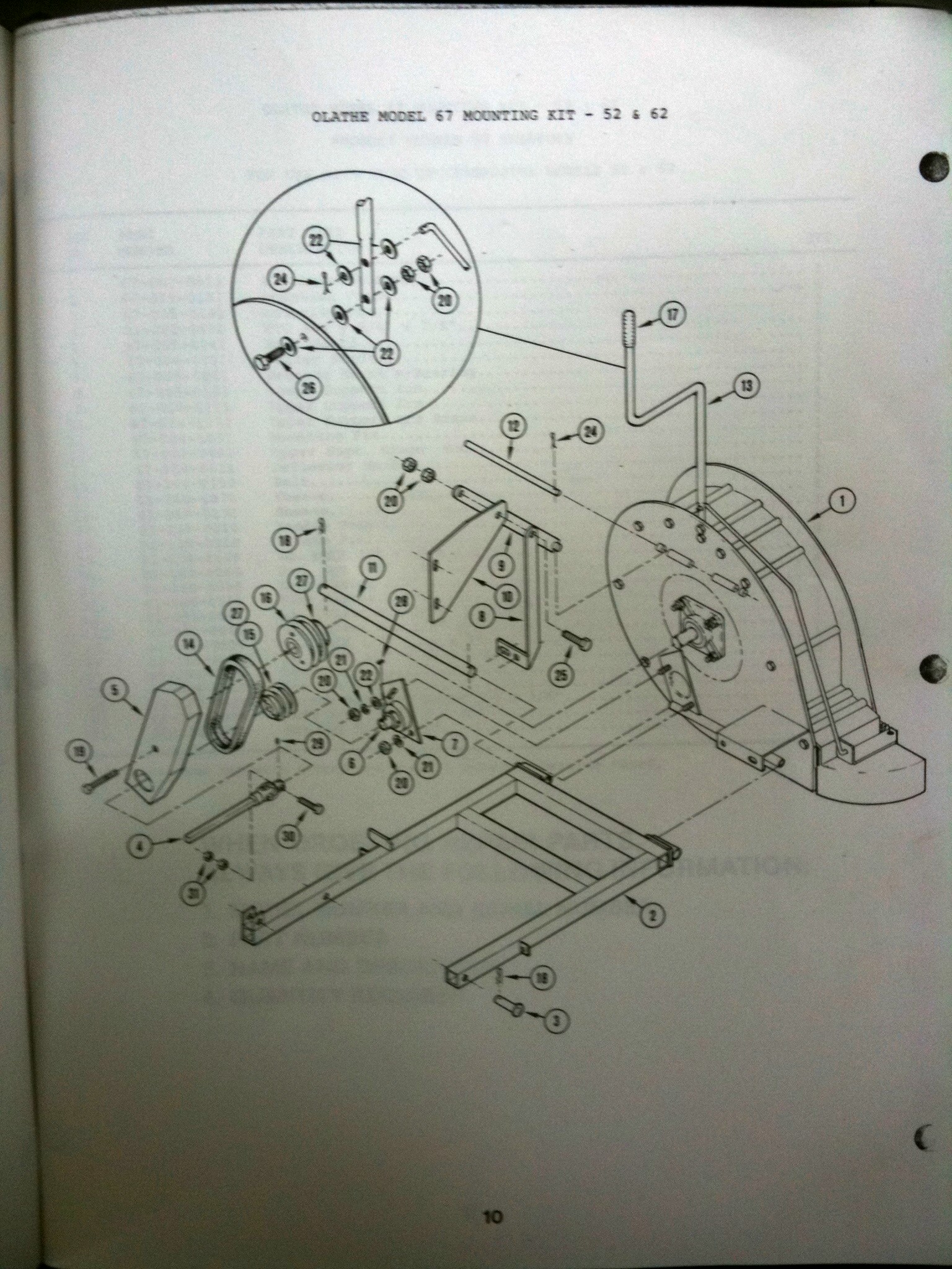 Issue #3 - Any source for (defunc) Olathe blower parts, maybe Toro Turf dealers? The Groundsmaster Series 52 and 62 mounting kit for the Olathe 67 blower is different than the mounting kit for the Groundsmaster Series 72 (pics 1 and 2 respectively). If I could find the increaser system parts used for the GM Series 52/62 it might make life easier. I believe the Olathe Model 61 blower (the Olathe factory 3-pt blower, see pic 3) also used this system. Alternatively, maybe a replacement PTO stub in pillow block bearings for the lower pulley and PTO shaft connection... ? Suggestions welcomed.