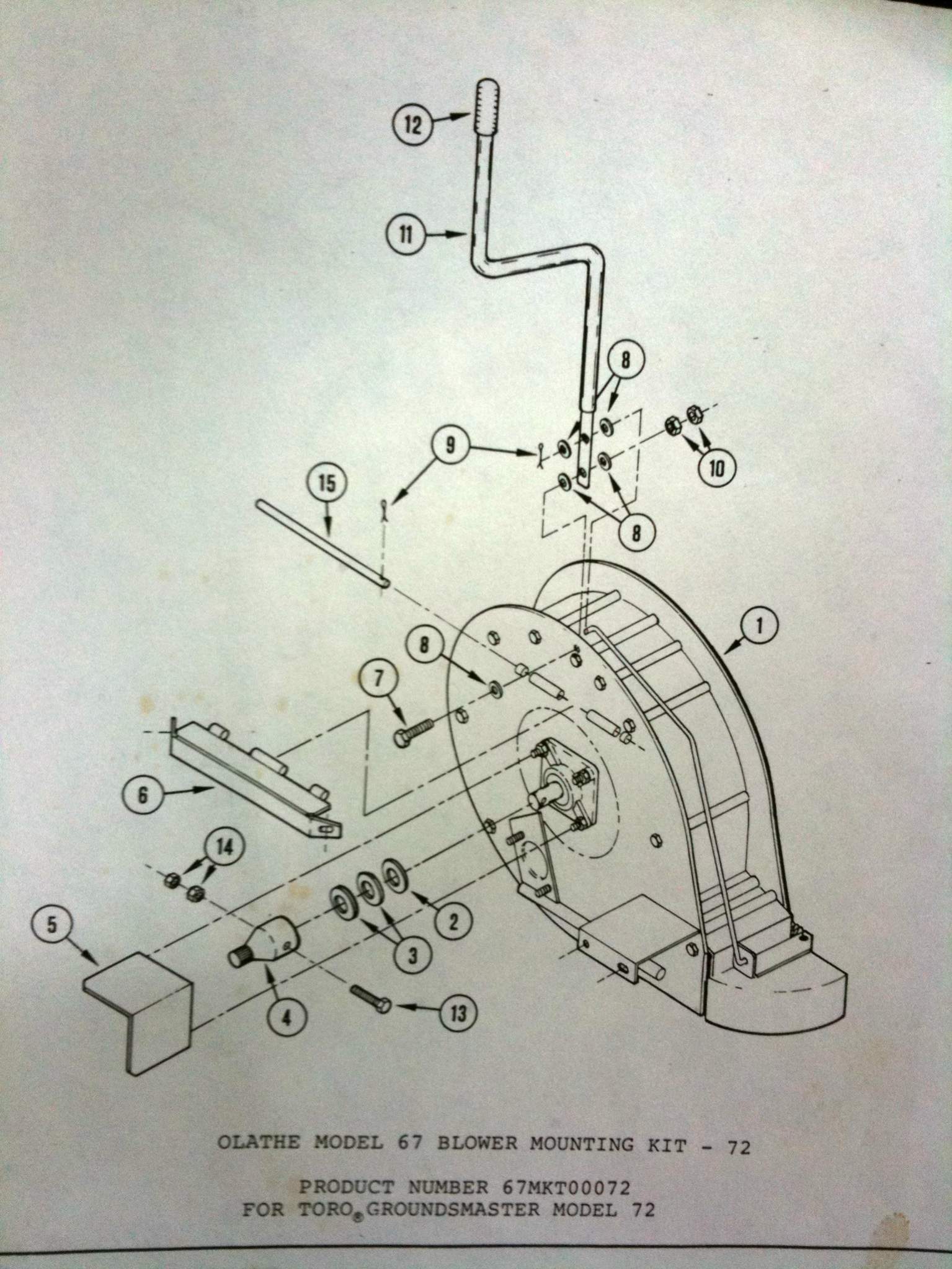 I picked up an Olathe model 67 leaf blower that was originally a front mount accessory for a Toro Groundsmaster, thinking it might be easy enough to mod for 3-pt hitch use. Unfortunately, it is off a 72 Series not a 52 or 62 Series, more on that later. In any event, I see some 'issues' so before I get started I figure I'd ask a couple questions. Surely someone has already done this.