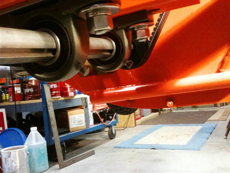 New wheels and final color are on. Test attach shows good clearance, can still raise wheels another inch if needed. Tracks fine at mowing speed with no wobble. Got the pillow blocks and jack shaft ready for install, just waiting on some sheaves to arrive.