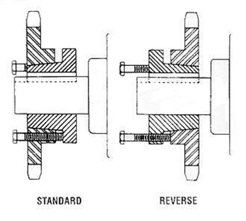 Existing clearance says I can mount the big sheave either Standard (hub bushing on first) or Reversed (hub bushing last).