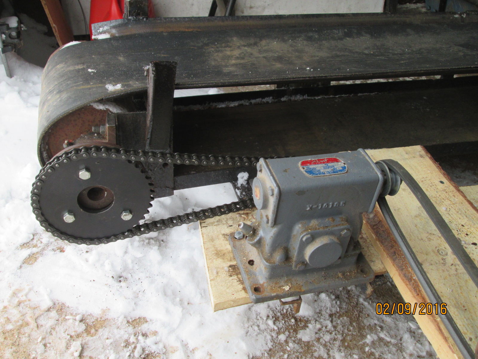 Actually, it looks like you could just attach a shaft from your tractor's pto to the drive on the elevator. Running the tractor off idle ought to give you the perfect belt speed. I have a hay elevator that will run that way (direct drive, no belts, chains or motors. If you have a mower or a post digger you already have the shaft. Just need to sleeve the prop shaft onto the belt drive shaft. Make sure you have good shaft guard shields.