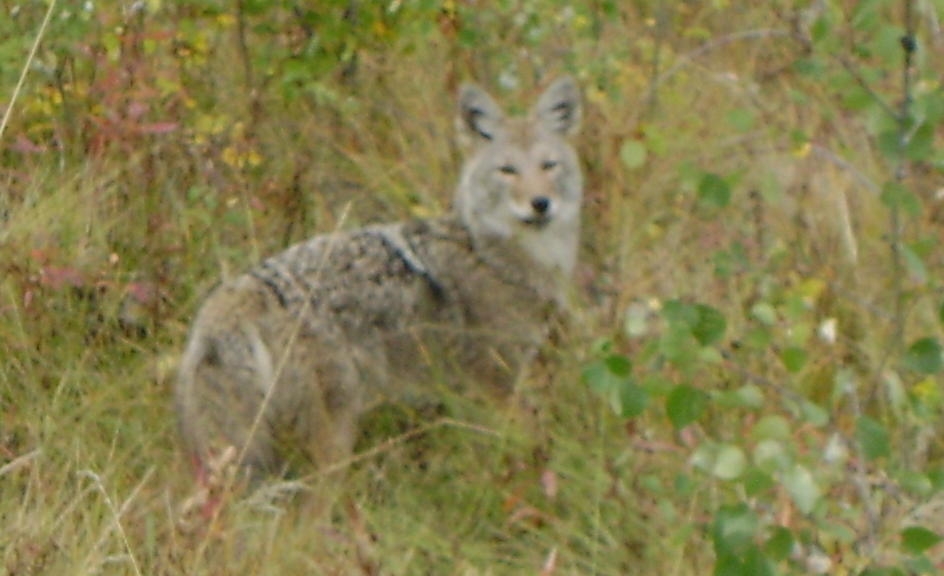 he looks healthy to me at that time, pretty big also. The ones I saw on my proprety they where the size of a mid size dog, maybe 40 pound at best.One day when working up mt. with my backhoe I noticed this scruffy coyote sitting watching me & he hung around for a while before wandering off he looked ruff and I didn't think he'd make through the winter. Next yr. I was splitting wood and this same scruffy coyote wandered by about 30 ft. from me and sat down on this moss covered rock outcrop about the same distance away. Soon he laid down put his leg over his nose like a dog and took a nap. I kept working and by the time I thought that it would make a good pic. he'd left and I've never seen him again.