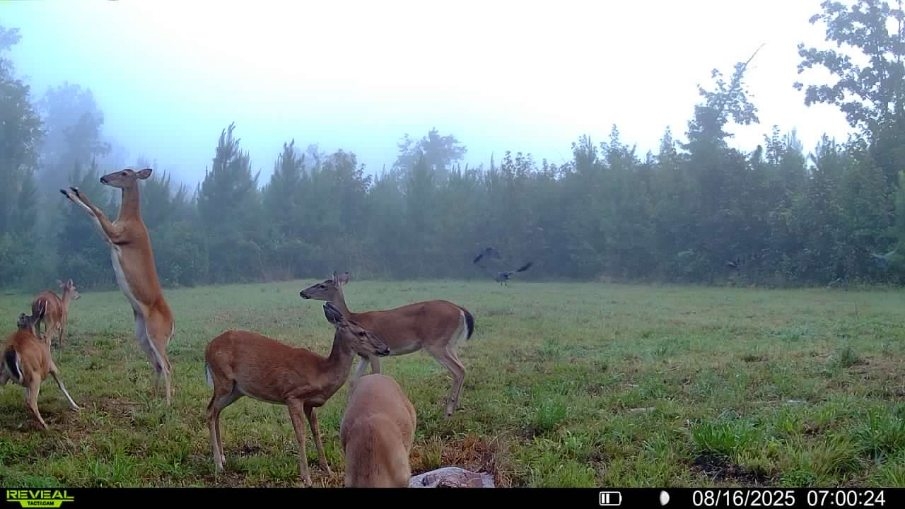 Grandson saw these on his food plot camera this week. There are two deer here raising up a buck and a doe. We've seen them but never raise their hoofs this high.