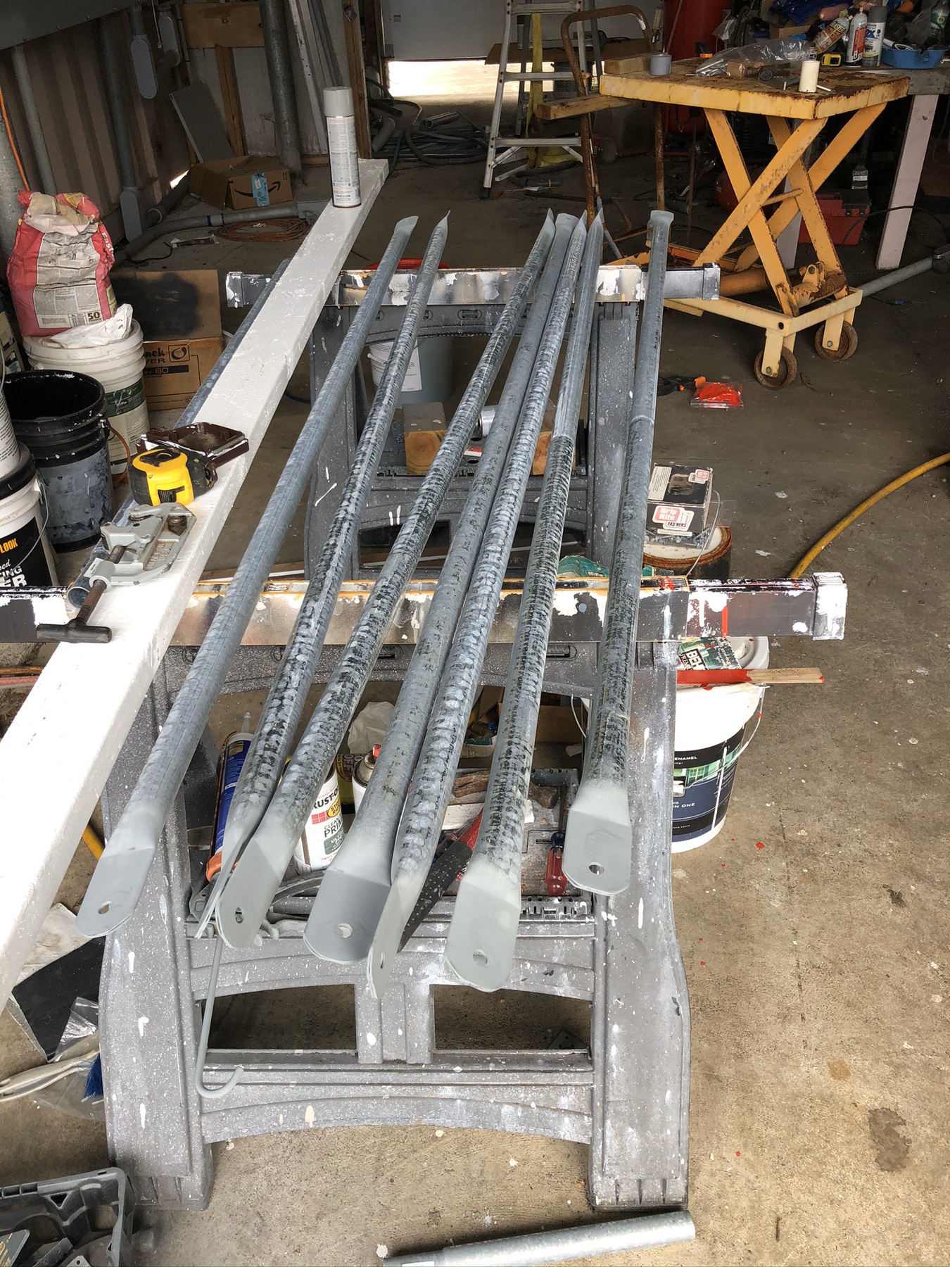Rafters, posts, etc cut and painted. Ready to start preassembly after paint dries. Tomorrow.