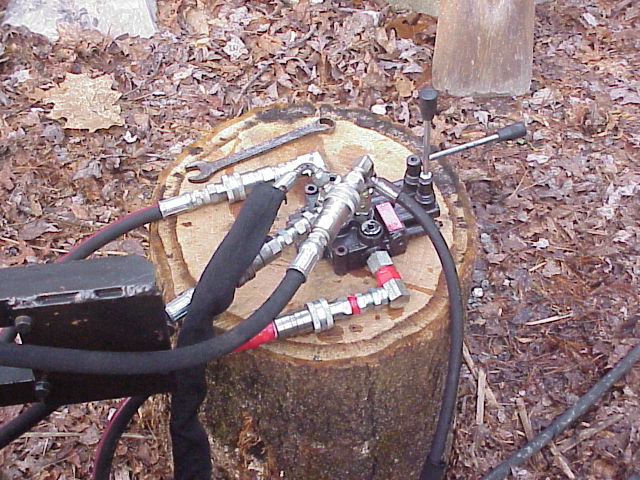 The Cross two spool valve works both the splitter and the log lift cylinders flawlessly when connected to the K_ubota hydraulics via my grapple remotes with the valve lever in detent...!!! I am going to test the Prince two spool using the same just to be sure that both the two spool valves are both in working order...(pics below of the Cross valve setup)