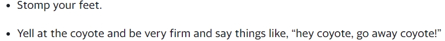All I can say is... the coyotes that hang around my place wouldn't be impressed much. Besides, not at all sure Nevada coyotes understand English all that well....so just wondering, what do you guys who deal with coyotes think of this advice?