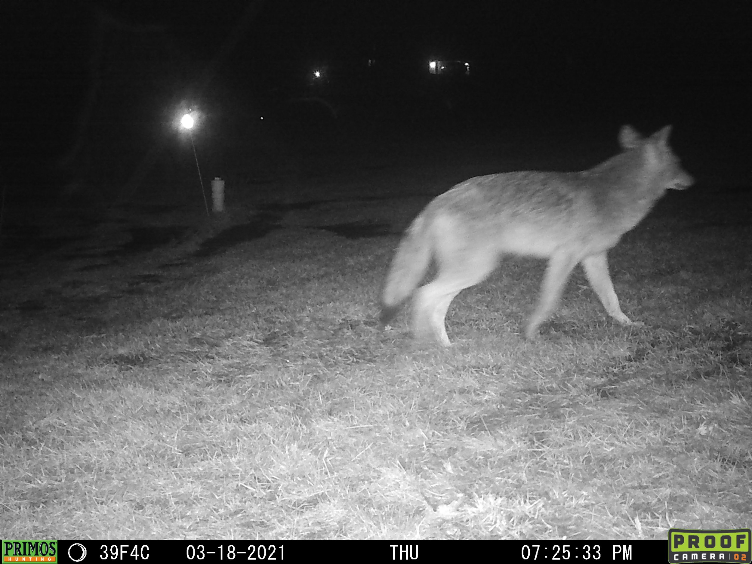 We have coyotes around, the bigger eastern kind. They have never caused any issues with any of my livestock or pets. As such, I enjoy seeing them and hearing them. Plenty of wild critters around for them to hunt.