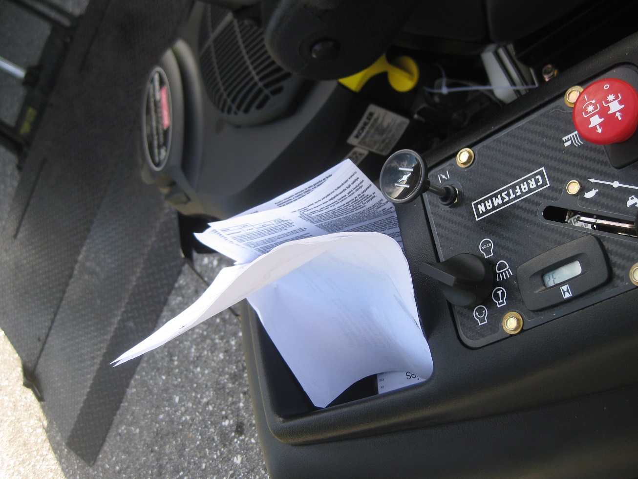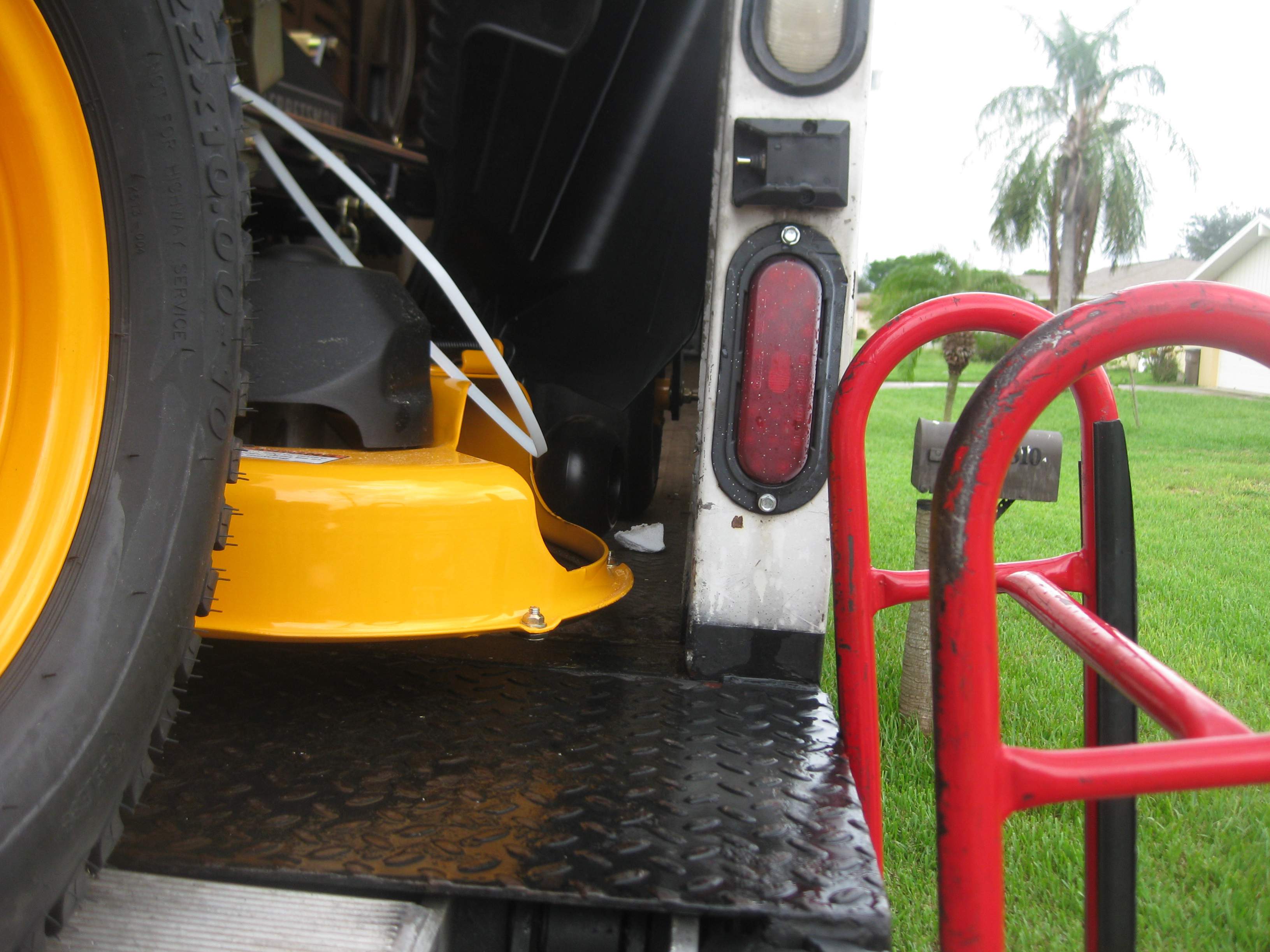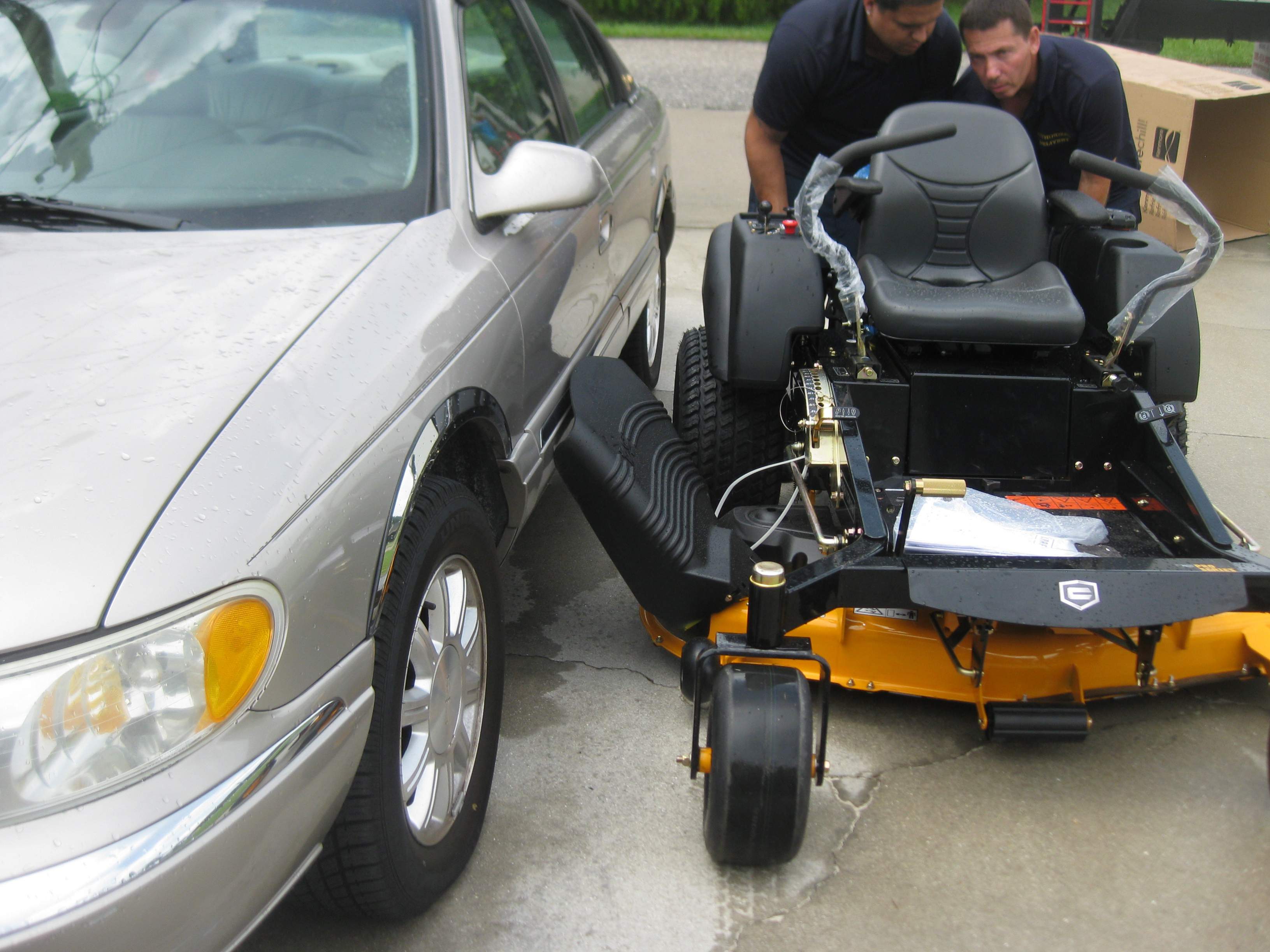 I took pictures and had them put it back on the truck. The worst news is that these delivery guys rolled the mower directly into my Lincoln Continental! Have a look at the pics. Transmission reservoir was bone dry on this one too. Guess this is Sears's way of giving great customer service. So, I guess another broken mower is scheduled to be here on Friday. I can't wait!