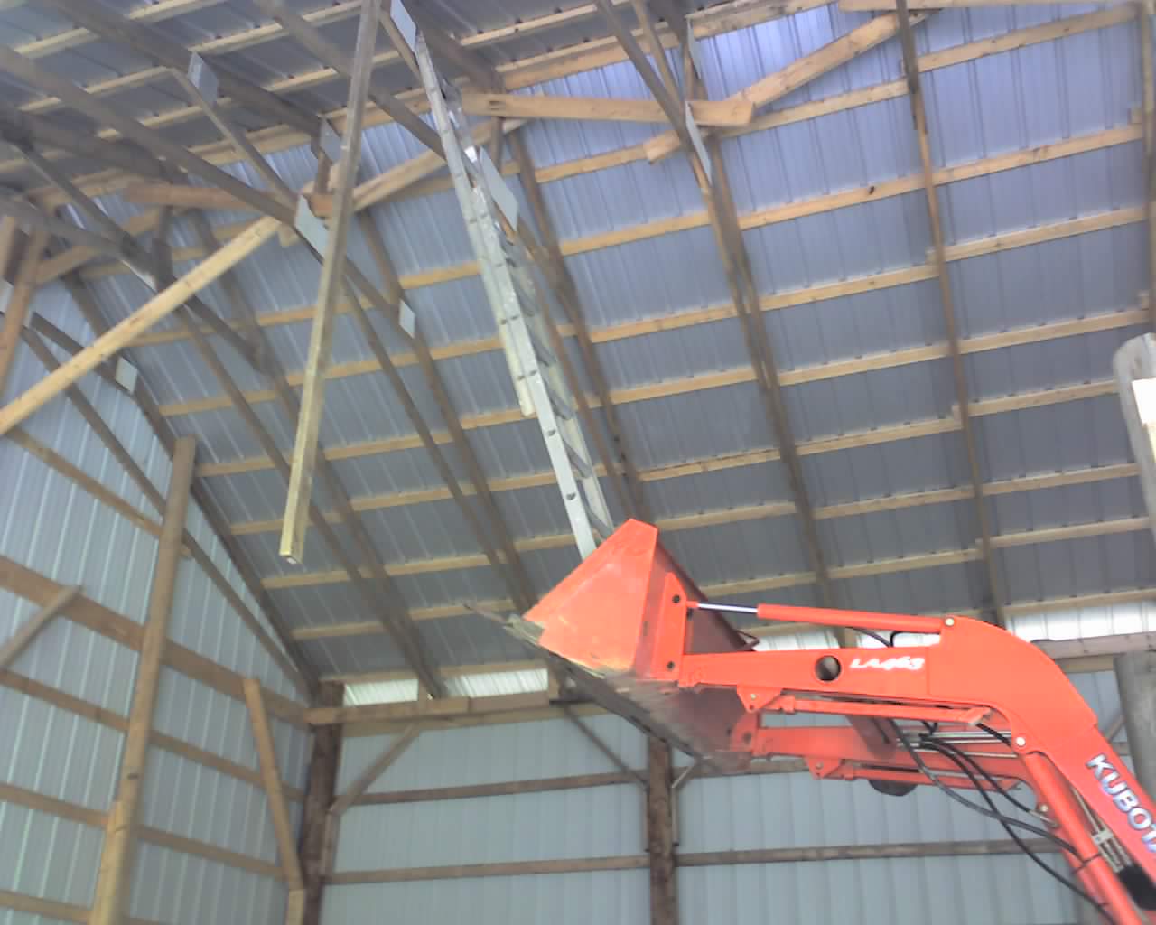 I don't have pictures, but I lifted my wife in the FEL bucket to hang our Christmas lights this past year. Climbing the ladder idea just seemed too un-safe and slow. ;)