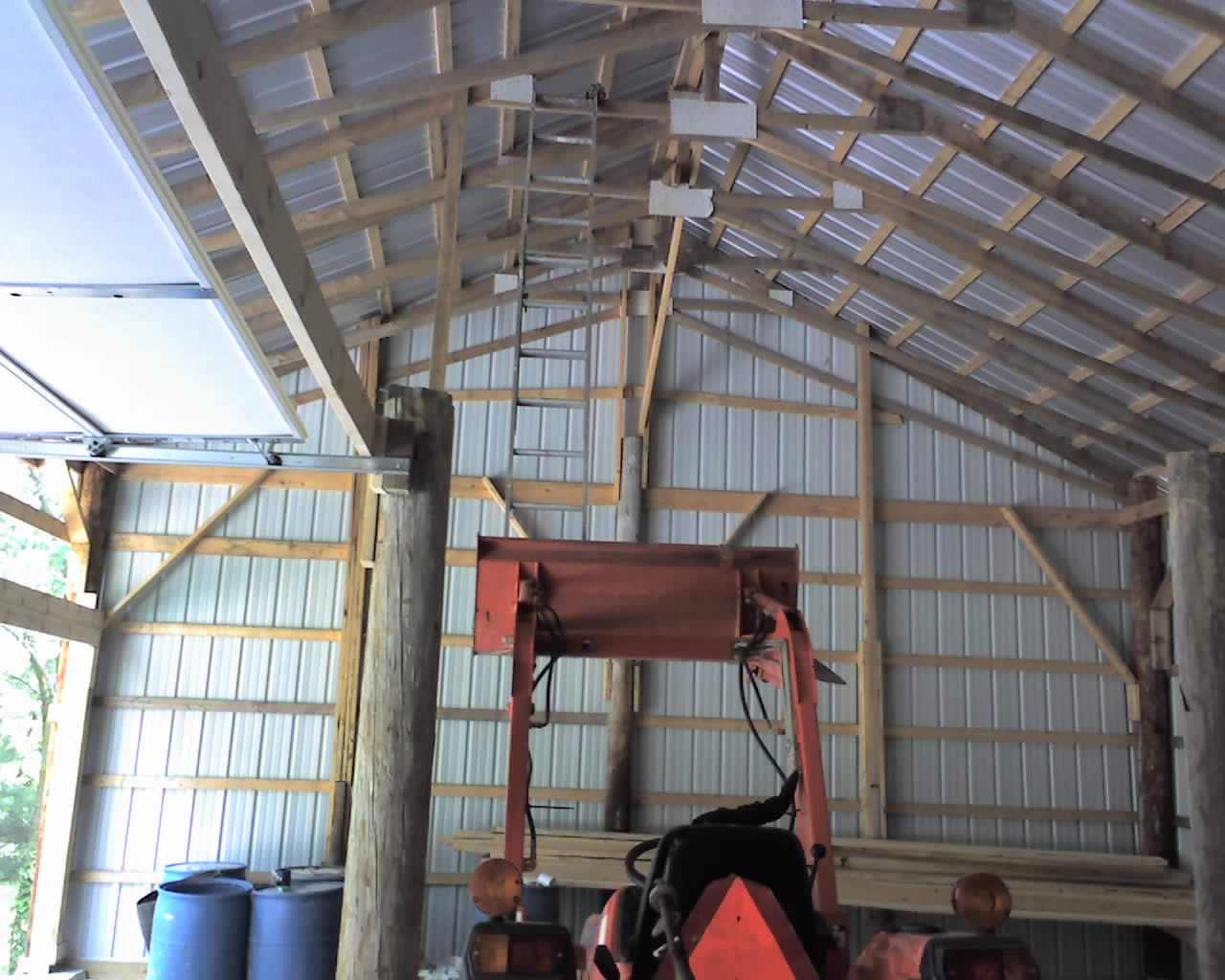 After I built my garage, I took the 40' ladder of my dads back to his house and I needed to get up there again to drop a 2x4 off the trusses to attach the garage door tracks to.