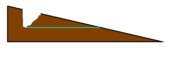 I'm not sure what your second sentence means. As far as starting by digging into the hill down to where the flat spot should be, I understand. But what are you doing with the loader then? I'm inserting a bad drawing here. This is what my slope looked like after first starting to dig. After this, I moved down the hill and dug more, and so on. Did you do something different involving the loader? (The blue line represents the flat level that needs to be created.)