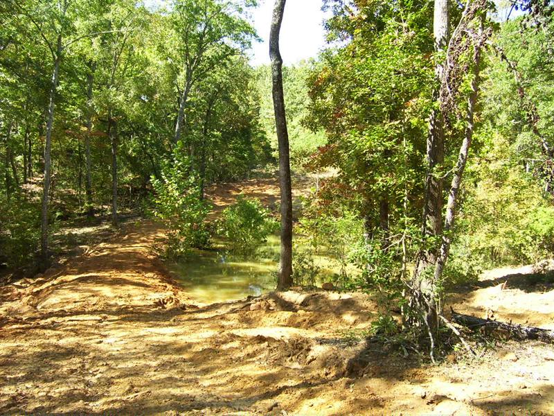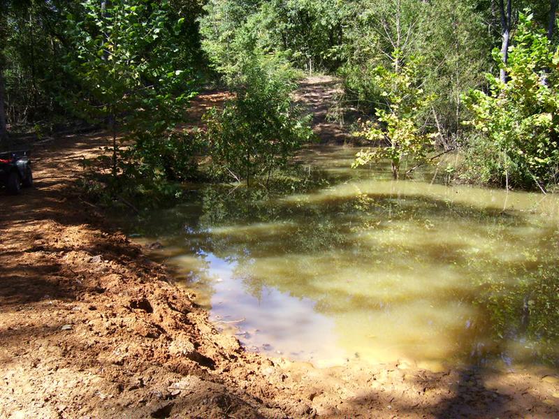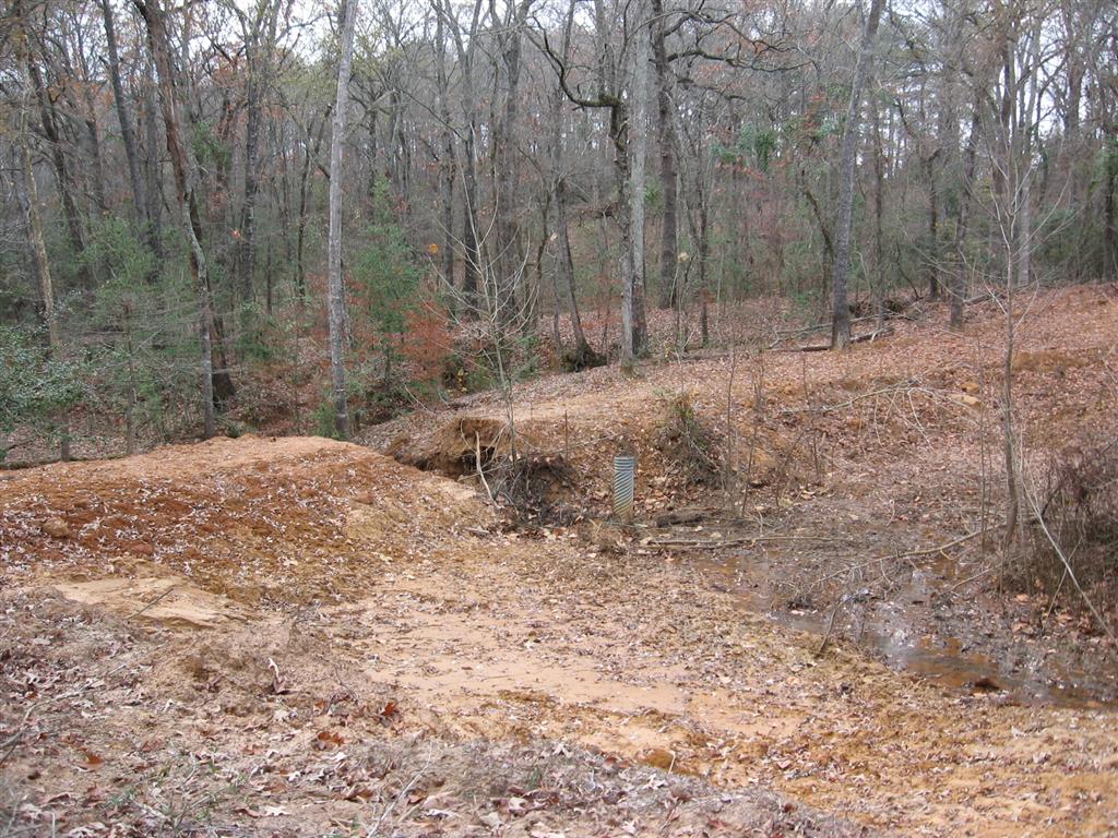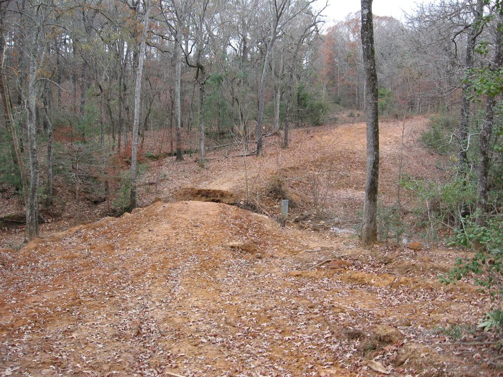 A couple pics taken from Sunday that a dam can fail. I will say that while the dam in this pictures was constructed just fine (lot of red clay, decent size), the overflow could not handle the hard rain. We figure it took less than 30 minutes to wash it out once the water started going over the top because (if I can find the pic), the water was backed up behind it a ways.