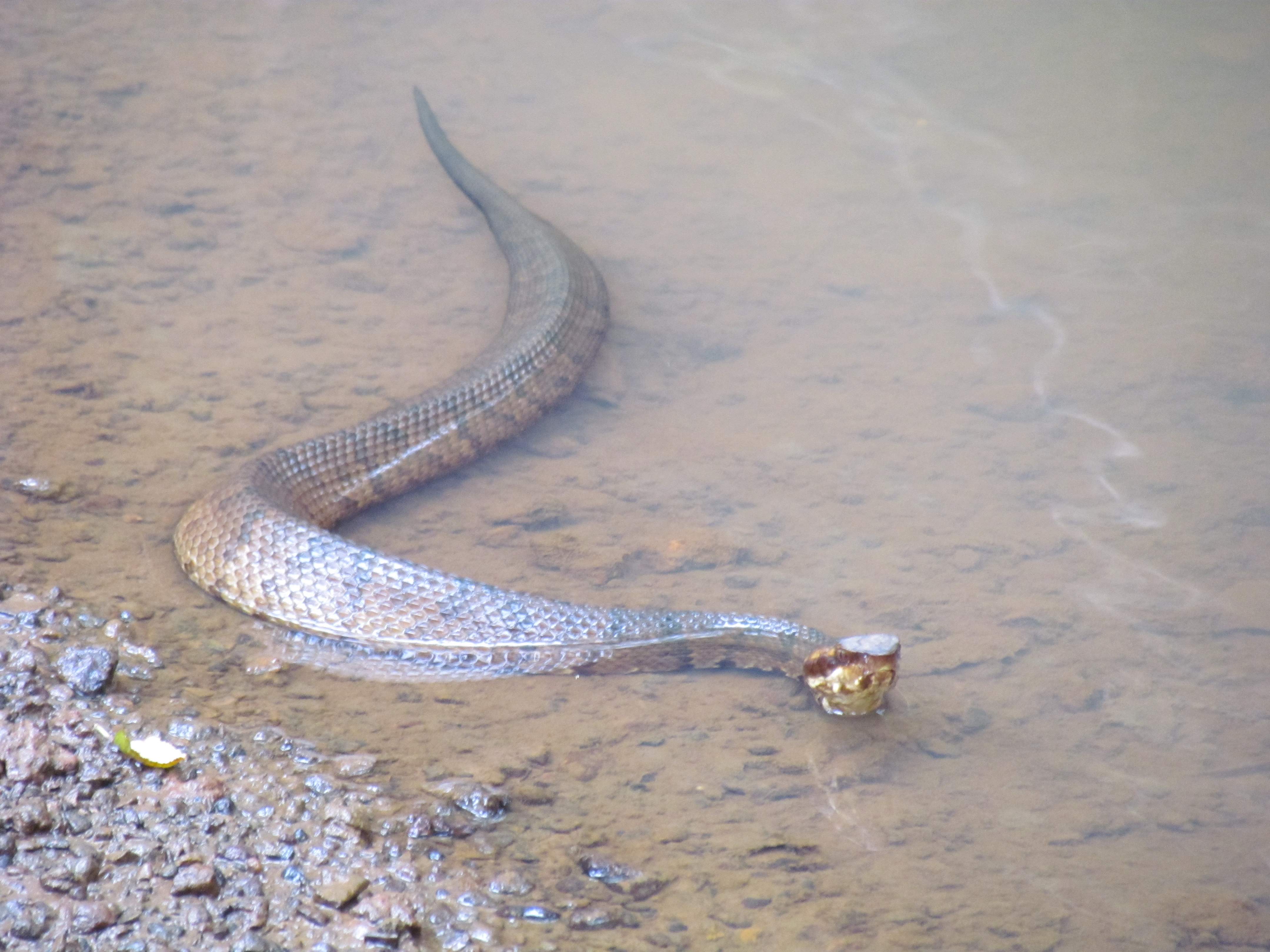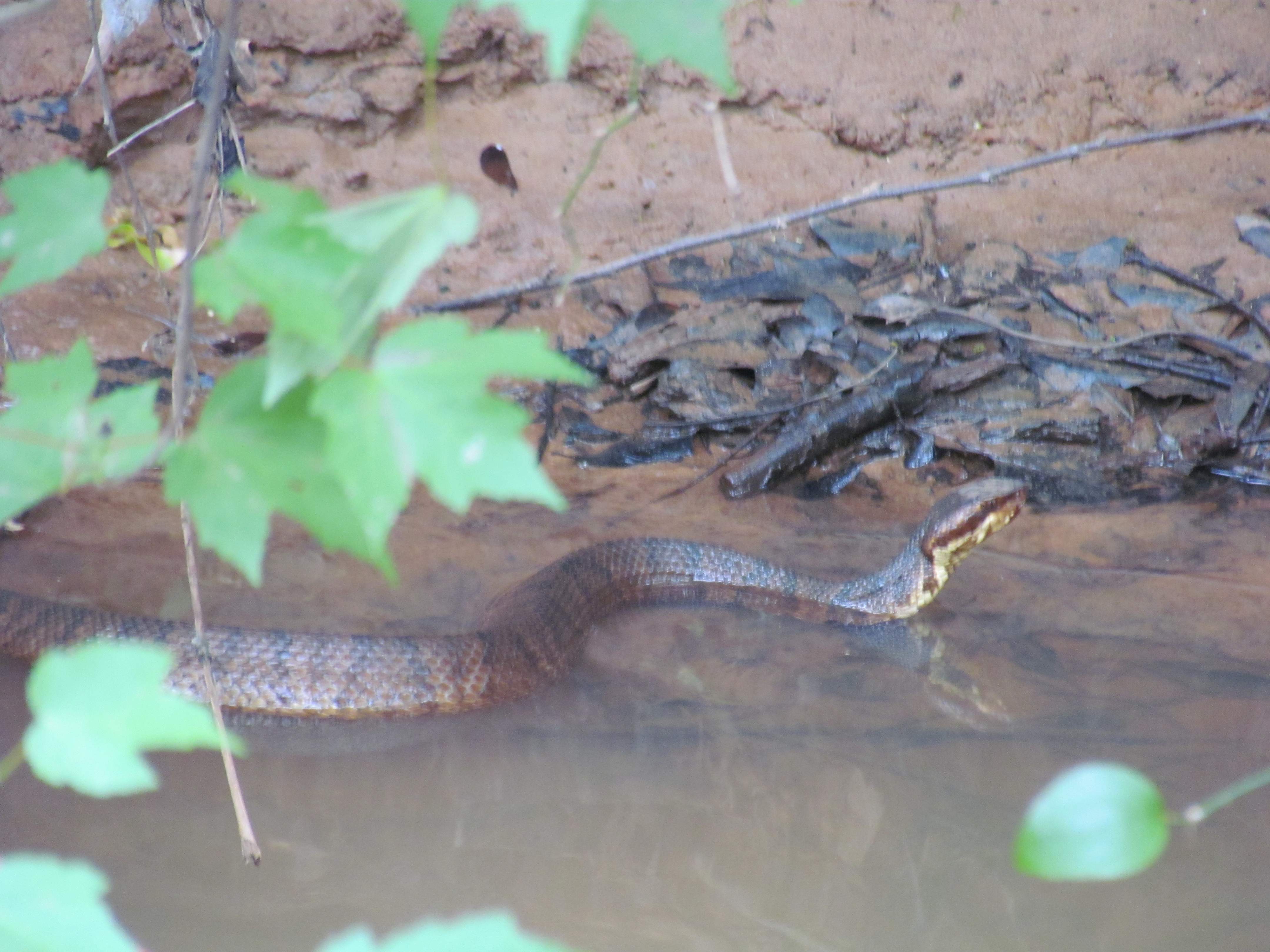 Then later on, we saw a water moccasin snake. I really need to carry a gun with me more often, but didn't when we saw it, and after posing for a few pictures, it went into some branches along the shore and disapeared.
