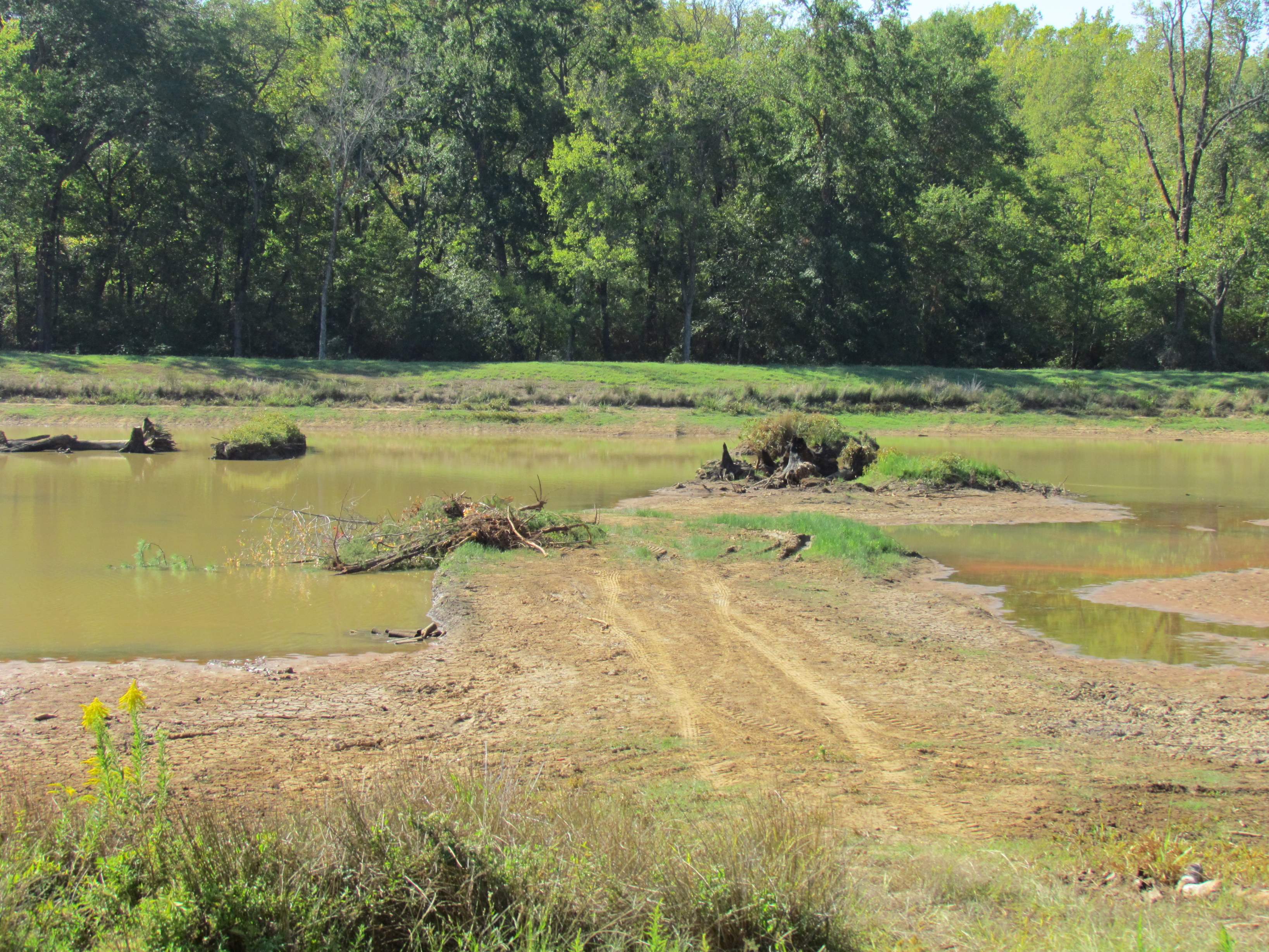There is a creek that is the property line. There are parts of it still with water, but most of it is dusty dry.