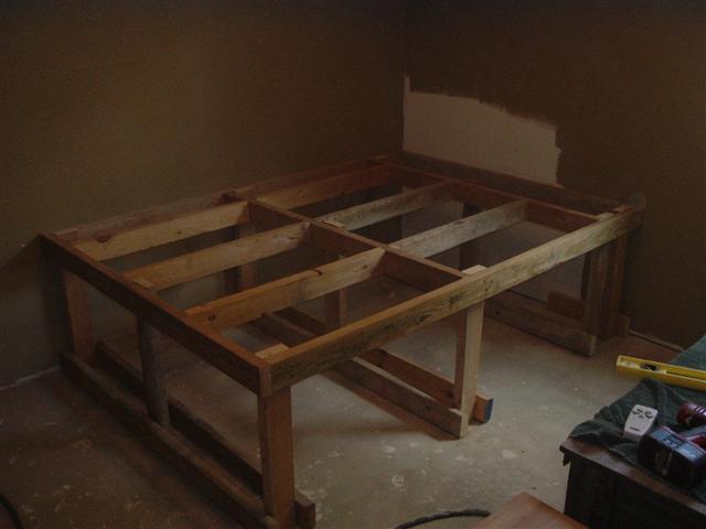 Next project to get done before carpet gets here and Steph moves in is the master bed. With a small room and a queen sized matress, we decided to put the bed in the corner. I'll crawl over, while she gets the edge.
