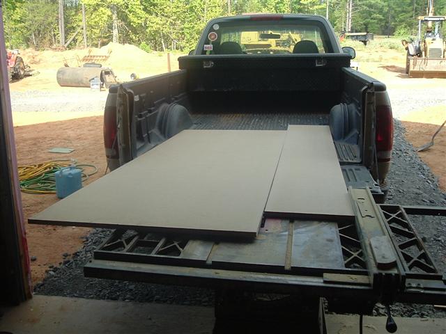 All my tables are either being used or buried under other things. I got this idea to use my truck bed to support the material as it comes off my table saw.