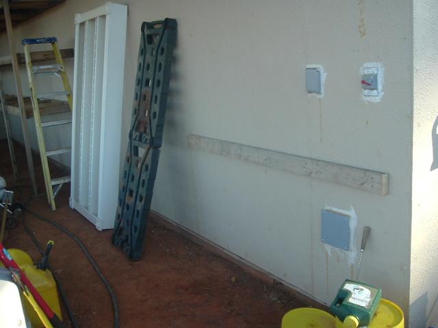 The grey boxes you see in the picture are my light switch, outdoor outlet and the big one on the bottom is a juction box with 4 12/2 wires dead headed. They will be used for future projects, but for now they are just in place waiting. /forums/images/graemlins/smile.gif