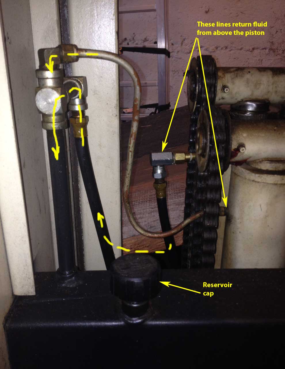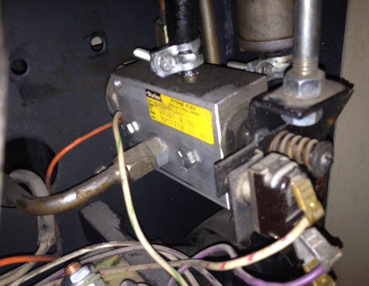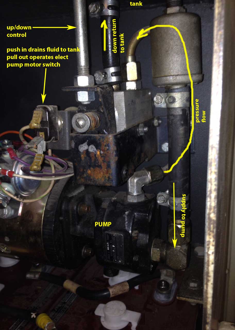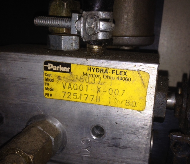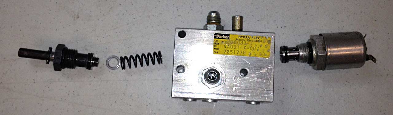 Hi there, I have a 20MT stacker, it's an electric forklift. Everything works good except the forks leak down about an inch every 5 seconds. Listening in the oil tank I don't hear any fluid returning from above the packing so the problem has to be in the lift/lower valve. Its the aluminum block at center of the pic.