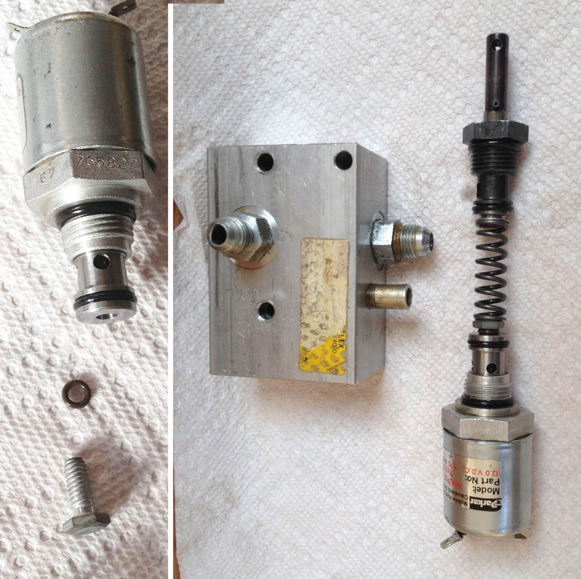 If you want to experiment: Remove the solenoid valve and look at the drill diameter below the valve cavity. Is the hole around 3/8 to 7 /16 in Diameter? Is the nose of the cavity reasonably smooth? If yes get a 1/2" diameter steel ball and a #8 SAE fitting. Put the ball in the hole install the fitting and operate the lift. The ball should seal on the nose of the cavity similar to how the check valve ball seals. You may need a soft spring to hold the ball in place.