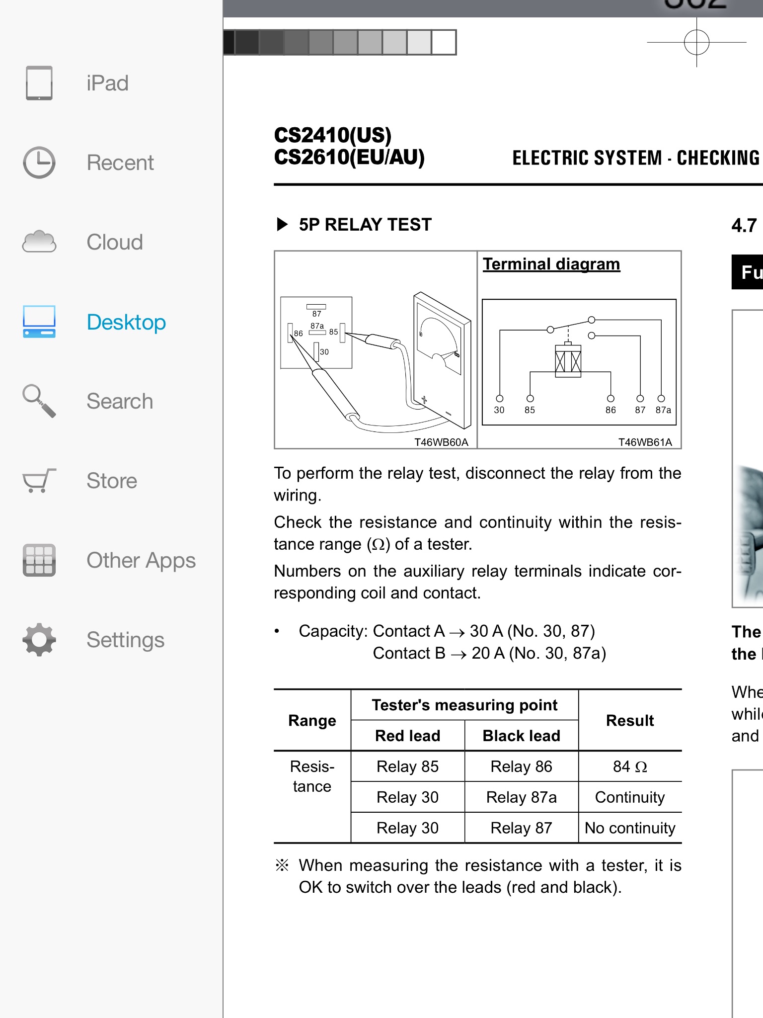 Start relay itself checks ok except ohms reading is 72.9 compared to 85 in manual.