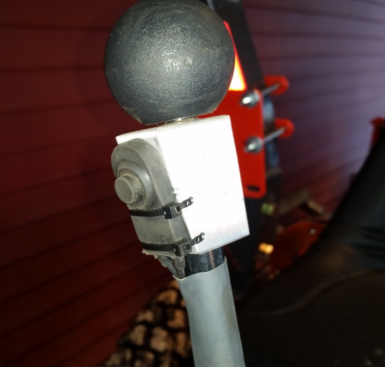 Zip-tied to the handle so you can hit it with your thumb is very ergonomic. I have 2 on my Kubota. One for the thumb on the hoe and one for the diverter up front.