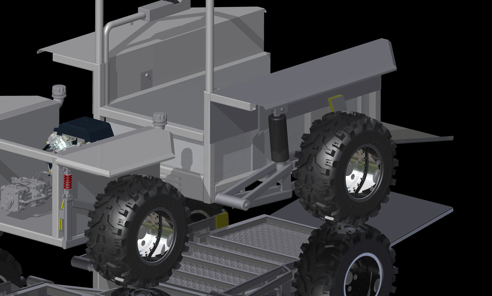 tail gate / ramp that drops down. for access of wheel chair.... at the very end of the gate come up say 1 foot with a piece of metal. and then an "actuator" vs a hydraulic cylinder possibly. with a quick removable pin. and then attach actuator back on the unit itself. i say actuator, due to possibly "not as heavy" in case something happen to motor of UTV, or like. and person might be able to remove pin and lift actuator out of the way, and let tail gate down. to get out of the UTV. actuator being 12v electric. you could place a cheap little flip switch right at tail gate / ramp. that would let ramp up or down. and avoid costly space of running hydraulic hoses. that may bend out into the area for the wheel chair to enter / exit the UTV.