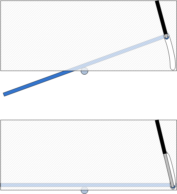 What if you made an arc shaped slit in both sides and had a rod stick through to connect to a pair of rams?