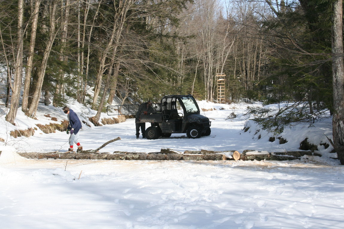 There are deer, wolf, coyote, fox, cat, fisher, squirrel, racoon, otter etc all active around there. Less of the deer tracks this time of year as they tend to be yarded up on fields.