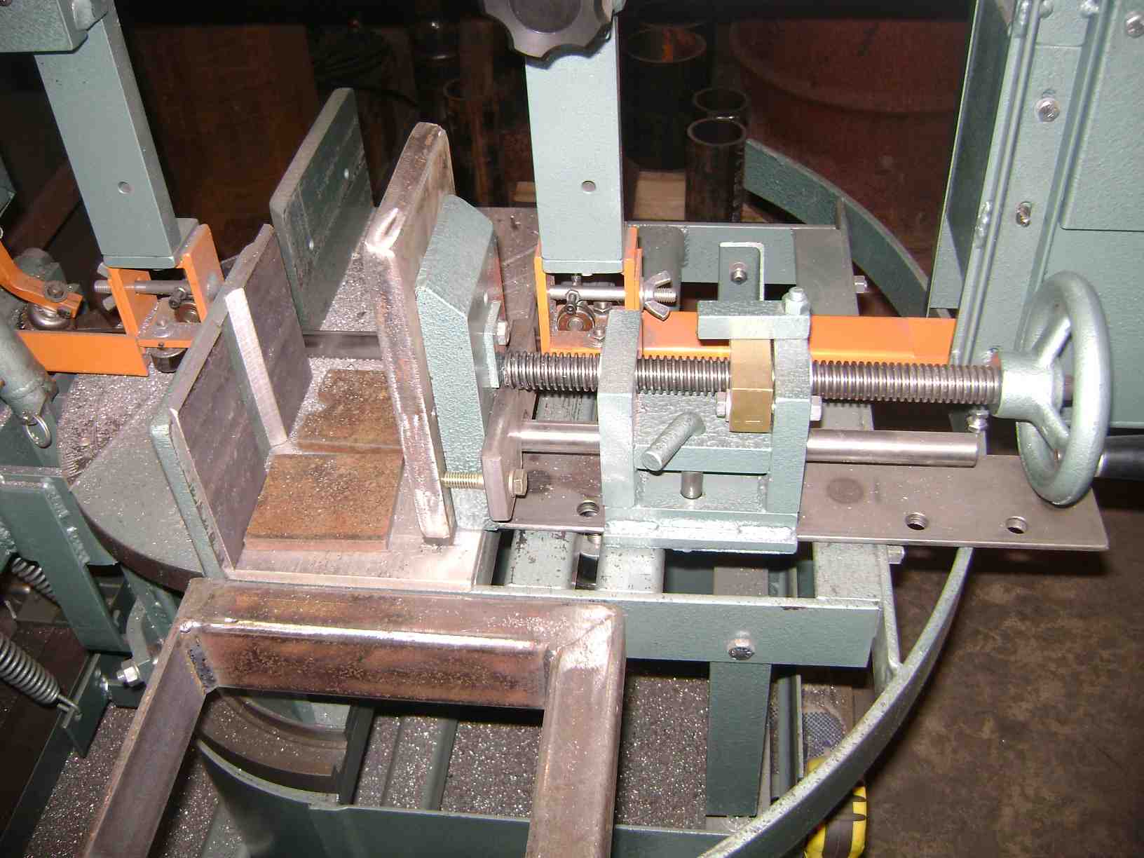 Do I put the rectangle in the vice like this? (This photo was made from the backside of the saw with the motor being on the left. The other one was made from the front. )