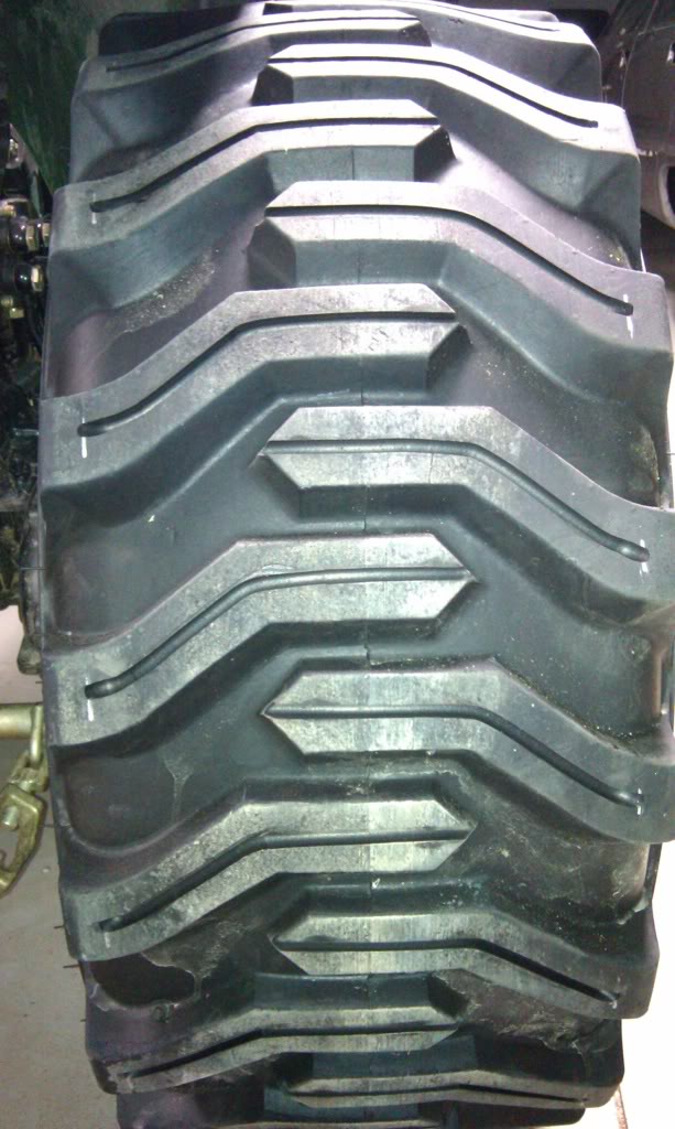 It's been nearly a year and I wanted to give a report on how the tires have held up with the grooves - they have held up well. There has been no chunking or tearing anywhere on any of the tires. I've pulled logs and pushed over trees. I've pushed into piles until the wheels spun. I've spun the wheels on dirt and on hard packed gravel. The tires are plenty stout even with the grooves.