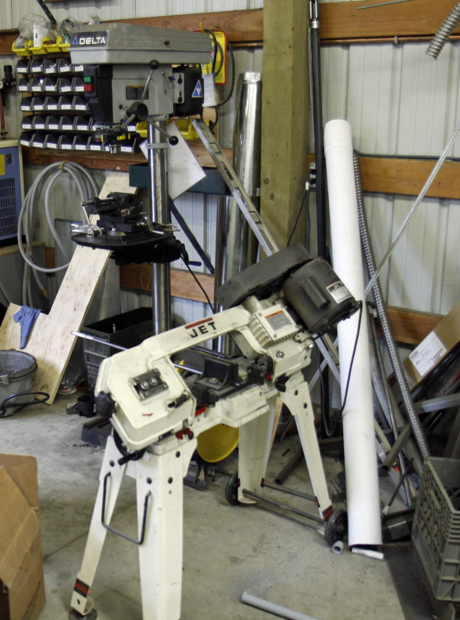 I have an el-cheapo bandsaw that I love, been thinking about replacing it when the time comes. Probably a Jet. I also have a plasma, dry cut, die grinder etc.