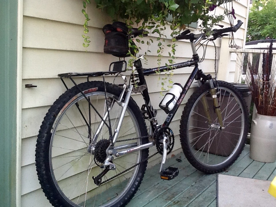 Back then that was one of the nicest suspension setups on the market. Prior to it there was a Kona Cindercone, kuhari? And a canadian tire model. Also got a Nishicki? Touring bike that has seen a lot of use. It's been between Banf and Jasper numerous times.